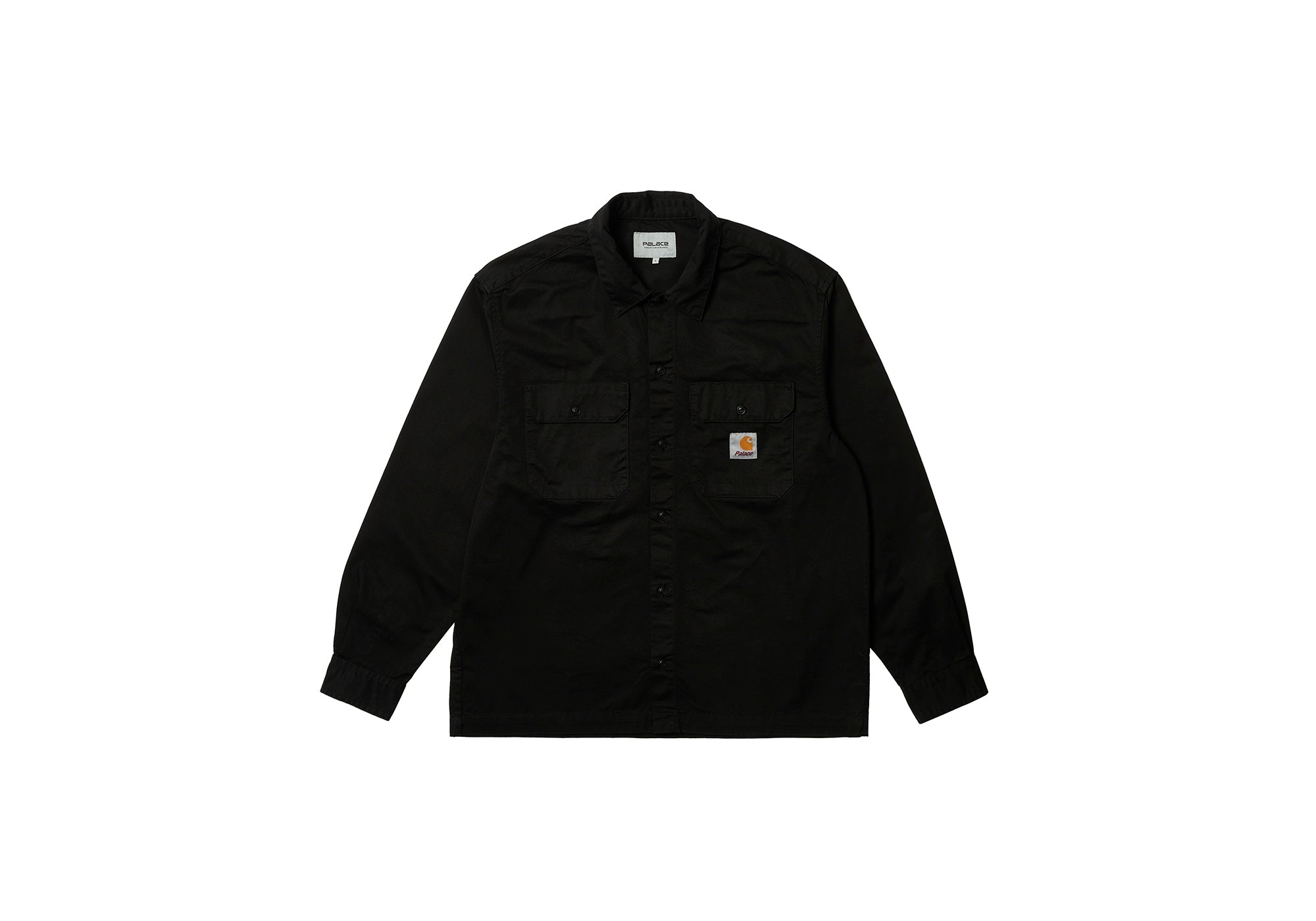 - DON’T GET - A JOB IN - PEPPER FASHION - UNLESS YOU WANNA - CHAT TO 82% - BELLENDS Technical Details PALACE CARHARTT WIP LONGSLEEVE MASTER SHIRT WASHED BLACK Details - Regular fit - 100% cotton twill - Two chest pockets with flap and button closure - Palace Carhartt WIP square label - WIP script label