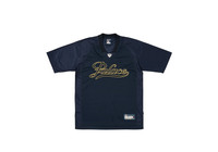 - PALACE MERKS - ALL CONTENDERS Technical Details CONTENDER MESH JERSEY NAVY Details - Mesh jersey - Front poly twill applique branding - Sports equipment label at hem - Collar felt equipment badge