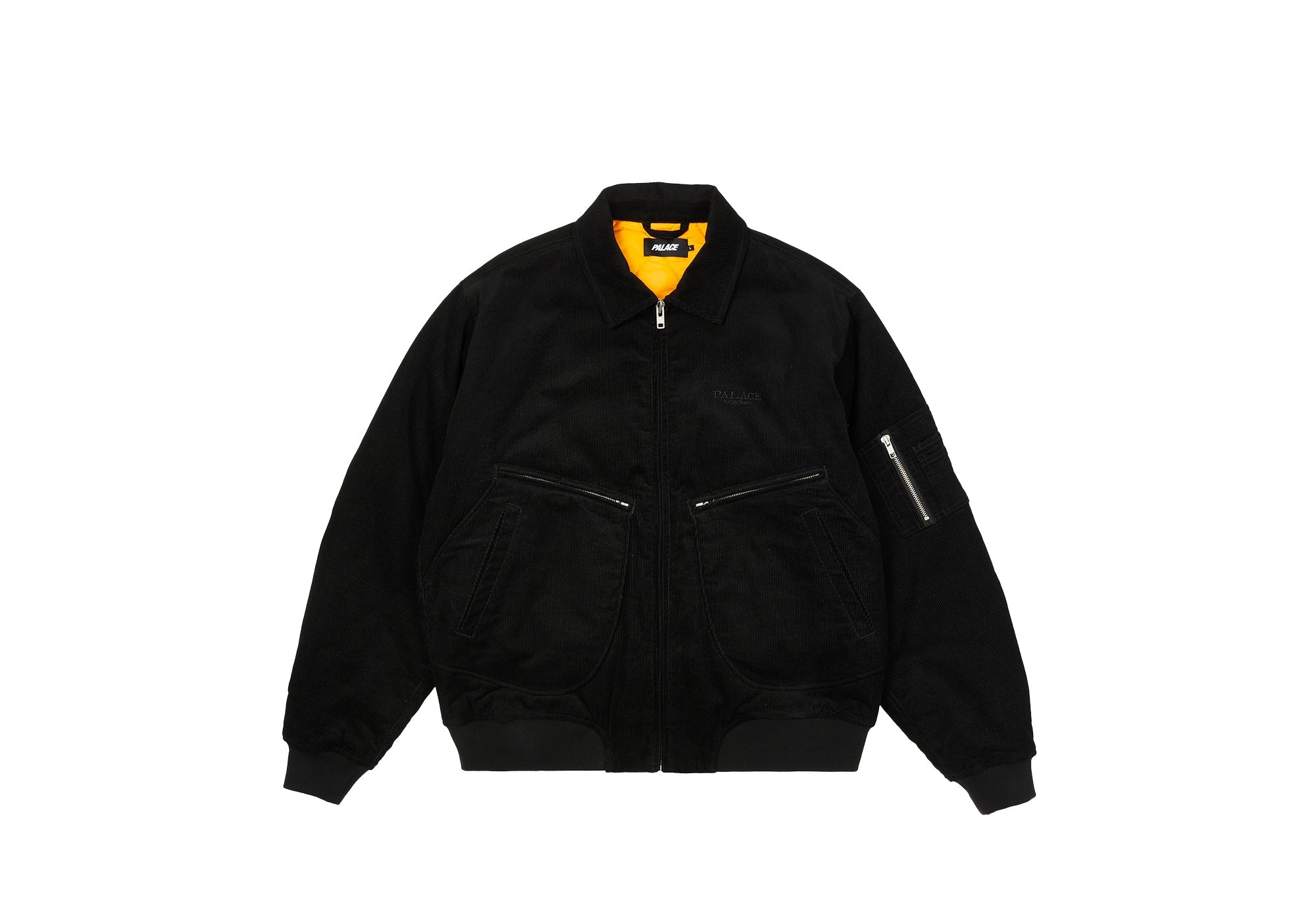- CORD - BUT NOT OLD PERSON STYLE - MORE YOUNG PERSON STYLE Technical Details CORD MA-1 BLACK Details - Corduroy bomber jacket - Quilted lining - Metal YKK zippers - Ribbed cuff and hem - Piped zip pockets - Palace London embroidered logo on back