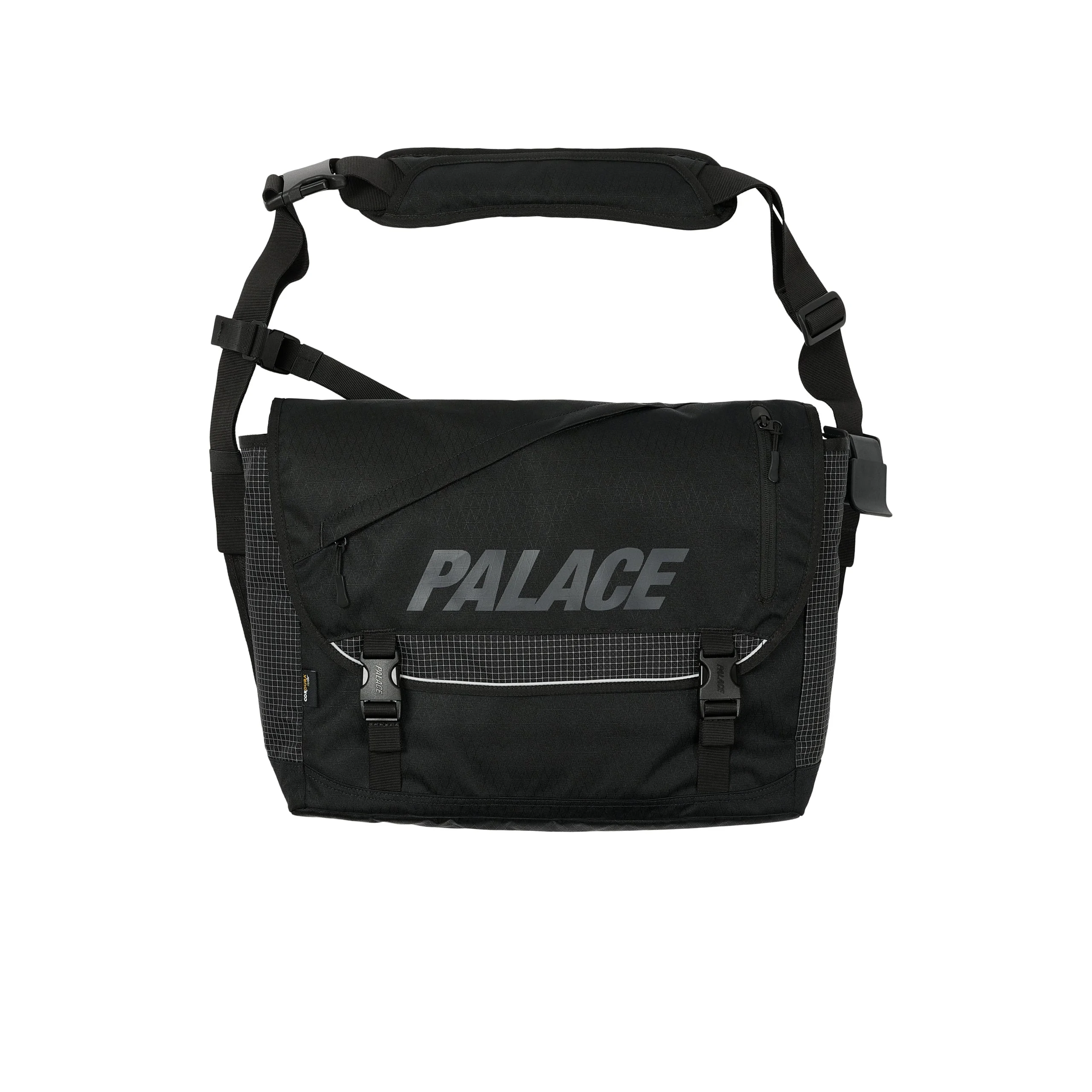 - palace - luggage - essentials TECHNICAL DETAILS - outer shell: 100% polyester eco re-cor cordura® diamond weave - outer trim: extrema x-grid ripstop (nylon + uhmwpe) - inner lining: polyester 150d - palace printed logo - large main compartment with 20mm closing clip - foam padded main base - four zipper compartments / pockets - foam padded inner back laptop slip pocket - YKK® nylon zippers - ergonomic zip pulls - poly webbing adjustable shoulder strap - poly webbing cross body support strap - hypalon trim - foam padded ergonomic + performance air mesh shoulder pad - woojin nylon dtm fittings - webbing carry handle - refective piping - palace branded detachable inner key clip / strap - palace branded side release clips