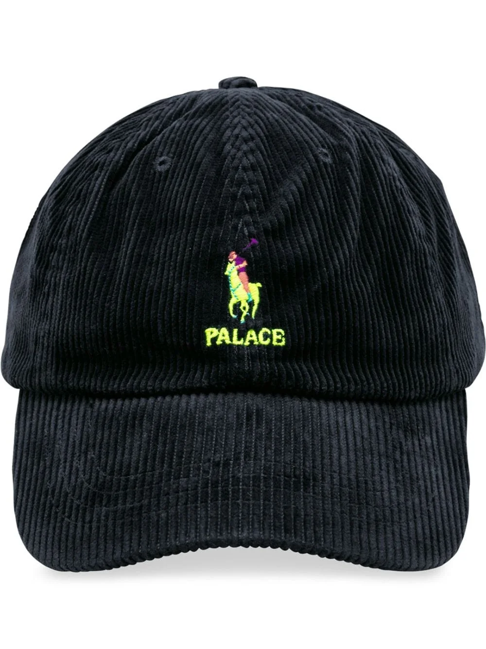 corduroy baseball cap Picture it now. Walking down the street and you spot your arch nemesis. What do you do? Why of course hide yourself with this navy cotton corduroy baseball cap from Palace. Nothing to see here. Featuring a curved peak, an embroidered logo to the front, an adjustable fastening and a cord detail. Made in Italy Composition Cotton 100%