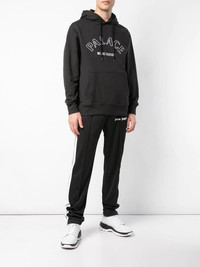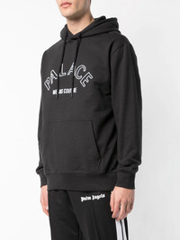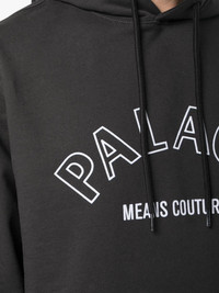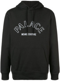 Couture "Black" drawstring hoodie The Palace Couture Hoodie in Black is a premium hooded sweatshirt by the London-based skateboard and streetwear brand. The design is a riff on the classic Versace “Jeans Couture” logo. The hoodie features a heavyweight fleece build in black with the graphic contrasting in white. The black Palace Couture Hoodie was a popular piece from the Palace Summer 2018 line. Imported Composition Cotton 100% SIZE & FIT Model measurements Height 6 ft 2 in(1.88 m) Bust/Chest 38.18 in(97 cm) Hips 37 in(94 cm) Waist 29.92 in(76 cm) Washing instructions Machine Wash