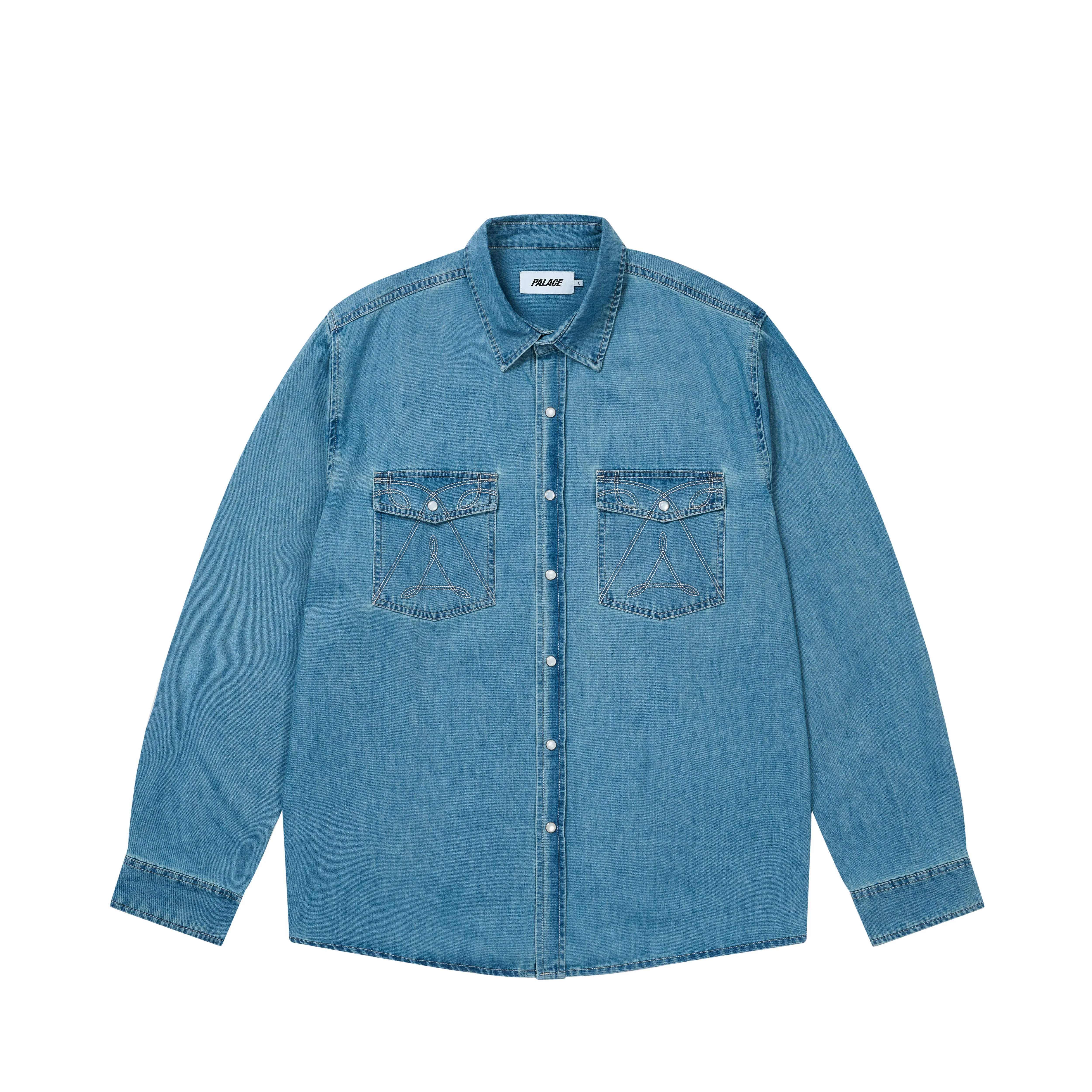 - if you're - over your shirt - just get - a new one TECHNICAL DETAILS - Contrast Embroidery Detail - Pearl Snaps - Palace Flag Label - Front Chest Pockets - 100% Cotton