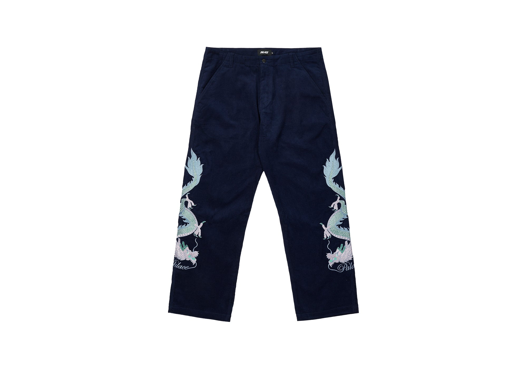 - TRUST ME BLACK FRIDAY AT PALACE - IS DARK FOR YOUR WALLET - NEIN SAVINGS - BARE CRAVINGS Technical Details DOUBLE DRAGON TOUR PLAIN PANT NAVY Details - Needle cord farbic - Embroidered artwork on both legs - Side entry pockets - Back welted pockets - Silver shank fastener with zip