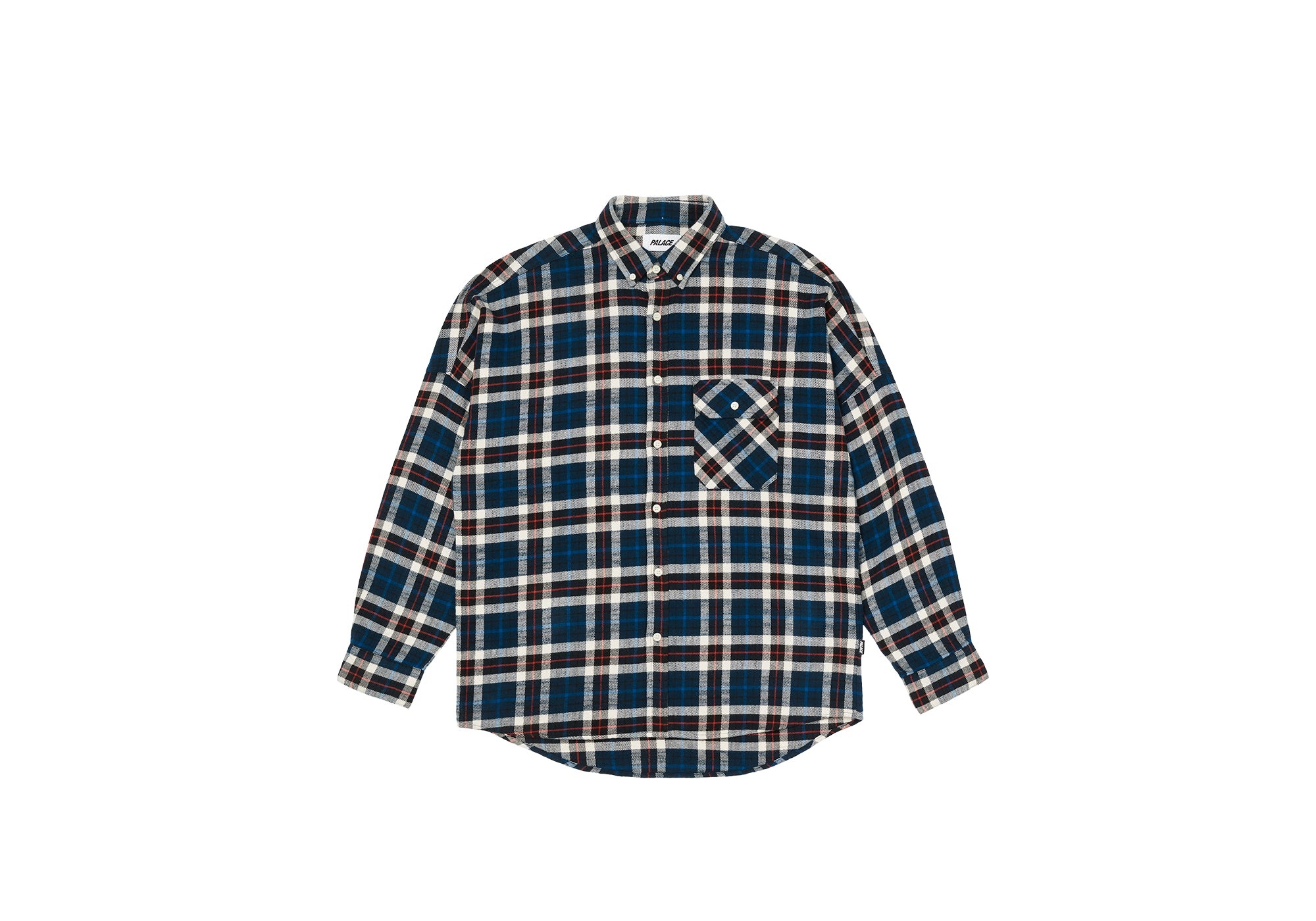 - 899% - YES PLEASE Technical Details FLANNEL DROP SHOULDER SHIRT NAVY Details - Drop shoulder flannel shirt - Pocket at left chest with button closure - Palace branded contrast embroidery on the back - Palace branded buttons - 100% cotton