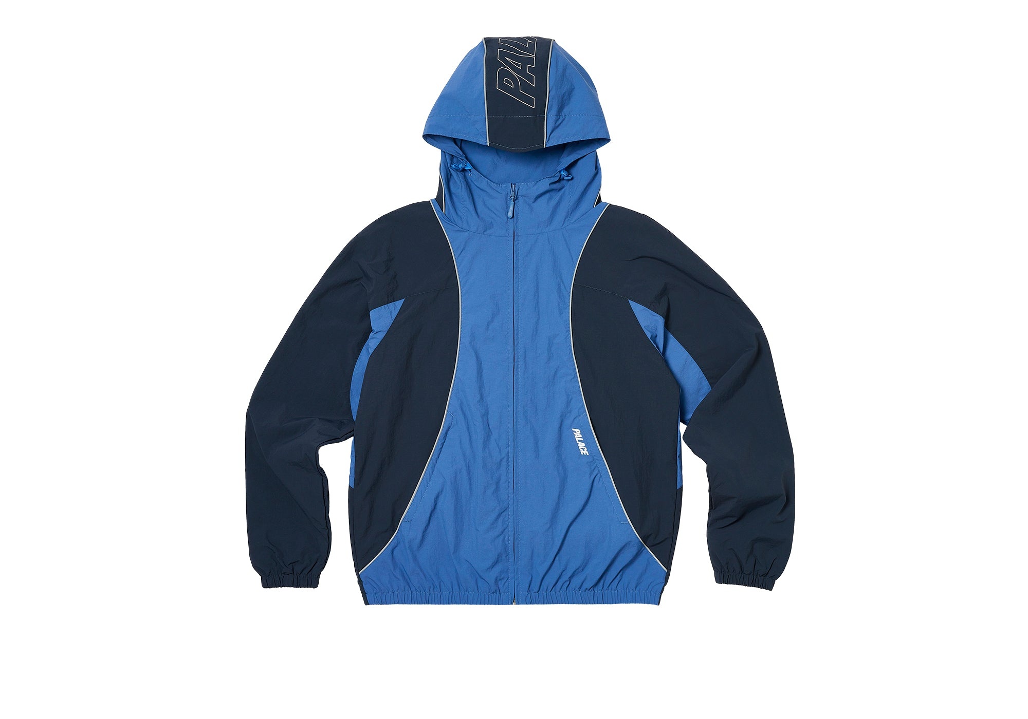 - LIVE YOUR LIFE - BUY SOME SHIT - YOU DON'T NEED - AND STOP READING - THESE DESCRIPTIONS Technical Details FONT ZIP SHELL JACKET BLUE / AIRFORCE Details - Nylon taslan outer shell - Water repellent finish - 3M Scotchtlite reflective piping - YKK zippers - Palace logo zip pulls - Adjustable peaked hood - Elasticated cuff & hem - Palace outline logo on hood - Small Palace logo on chest