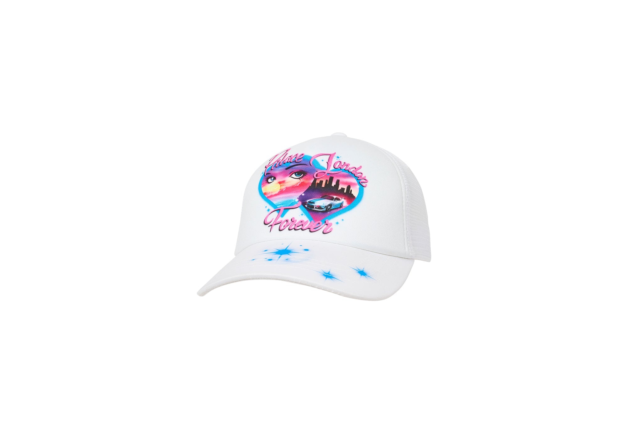 - DUNNO ABOUT - ROLLERCOASTERS MAN - I LIKE BIG TVS Technical Details PALACE FOREVER TRUCKER WHITE Details - Poly mesh trucker cap - Trucker foam front panel with printed Palace artwork - Adjustable plastic snap closure with Palace woven flag label