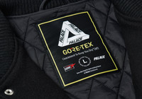 - I think this - Is waterproof - You know - Mad - Innit TECHNICAL DETAILS - Gore-Tex 3layer fabric sleeves - Mapel® Italian 850g wool body with wr finish - Internal Gore-Tex taped seamed interliner - Diamond quilted lining - Ribbed collar with tipping - Ribbed cuff and hem - Metal front snap fastening - Palace applique logo to front panel - Gore-Tex vintage chenille logo on sleeve - Palace Gore-Tex going further together applique and embroidered back panel - Internal Palace Gore-Tex label - Internal Mapel® label