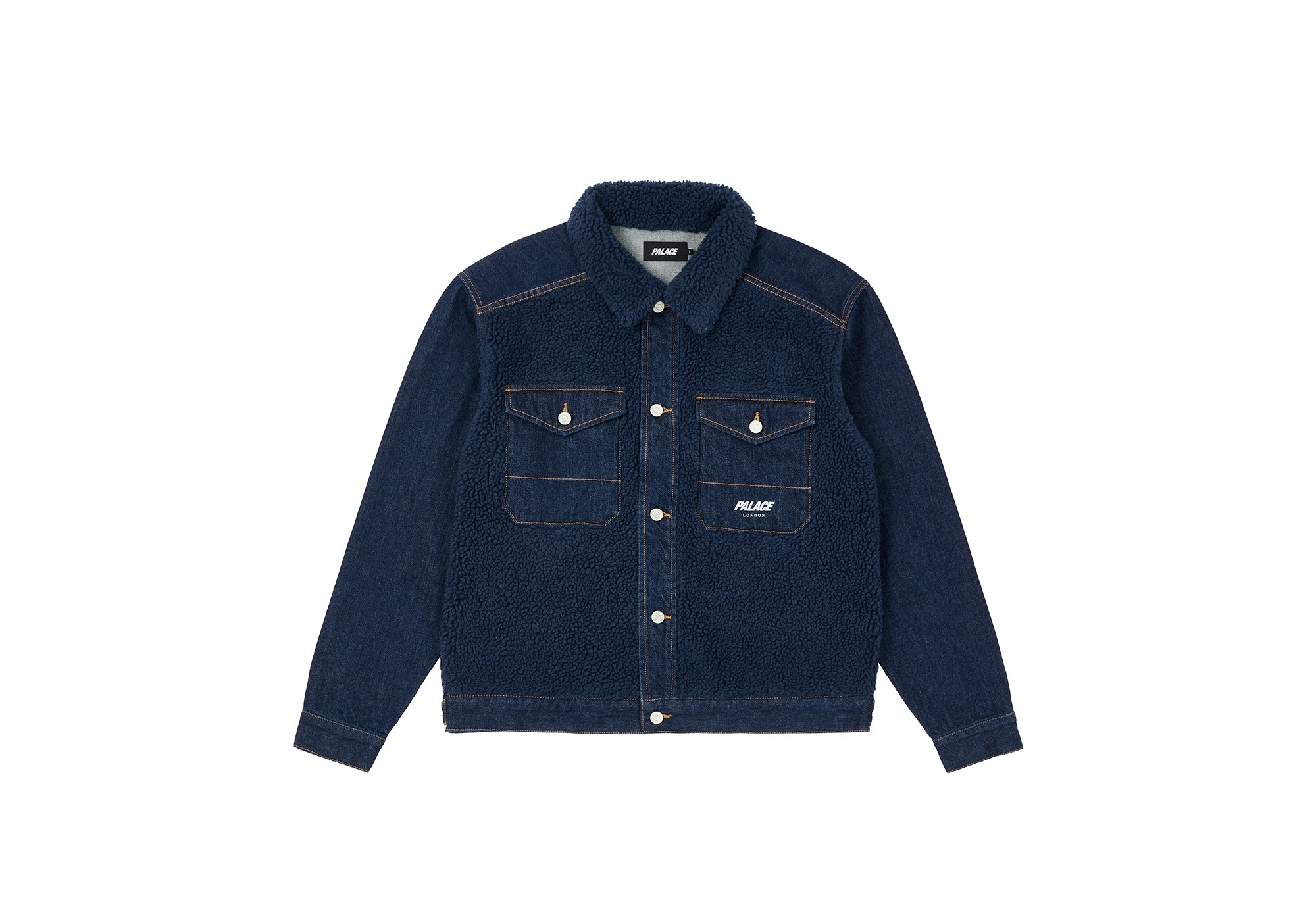 - THE - FINAL BOSS - OF DENIM JACKETS Technical Details GRIZZLY DENIM JACKET INDIGO Details - Japanese denim - Sherpa fleece panels - Metal Palace debossed buttons