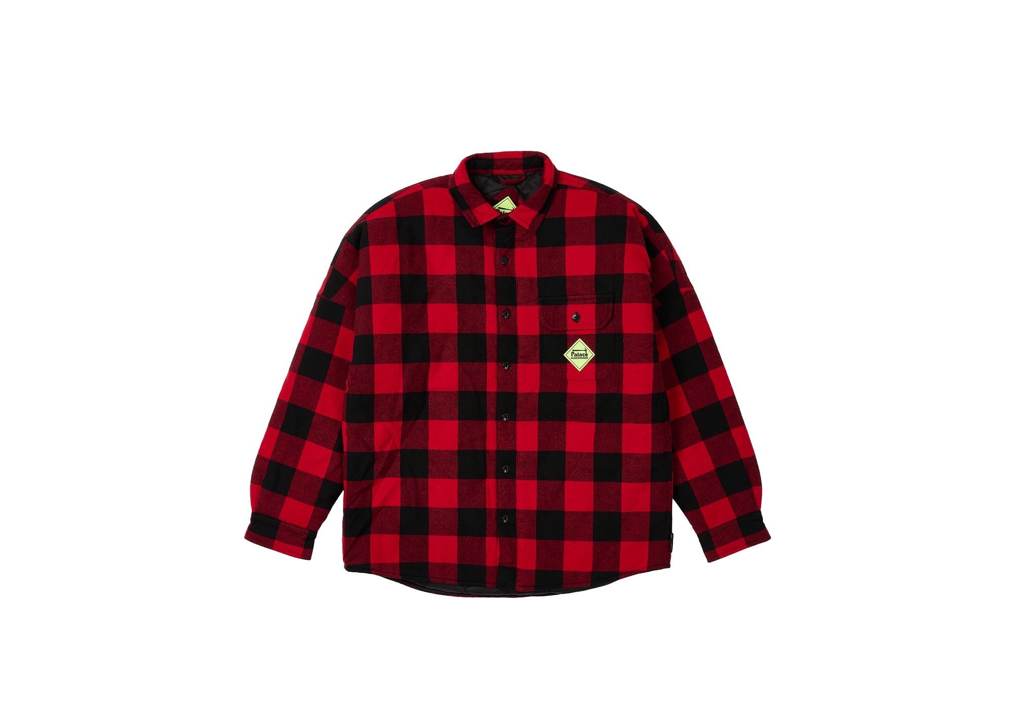 - INSULATION - FOR THE - NATION Technical Details PALACE HARDWARE INSULATED SHIRT RED Details - Cotton flannel drop shoulder overshirt - Diamond quilt 3M™ Thinsulate© insulation - Palace Hardware woven label at chest pocket - Black cats eye buttons - Water resistant