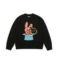 - ich got the brains - you got the looks - let's smoke - lots of bunny TECHNICAL DETAILS - Hand knit intarsia hat trick Palace artwork - Ribbed cuff neck and hem - 50% Wool, 50% Acrylic