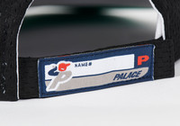 - IF YOU THINK - PALACE IS SHIT NOW - WAIT TILL YOU SEE - NEXT SEASON Technical Details HESH STRAPBACK BLACK Details - Poly air mesh pal hat - Front & side embroidered nylon twill applique Palace logos - Kelly green cotton twill undervisor - Adjustable self strap velcro closure with woven logo badge