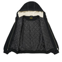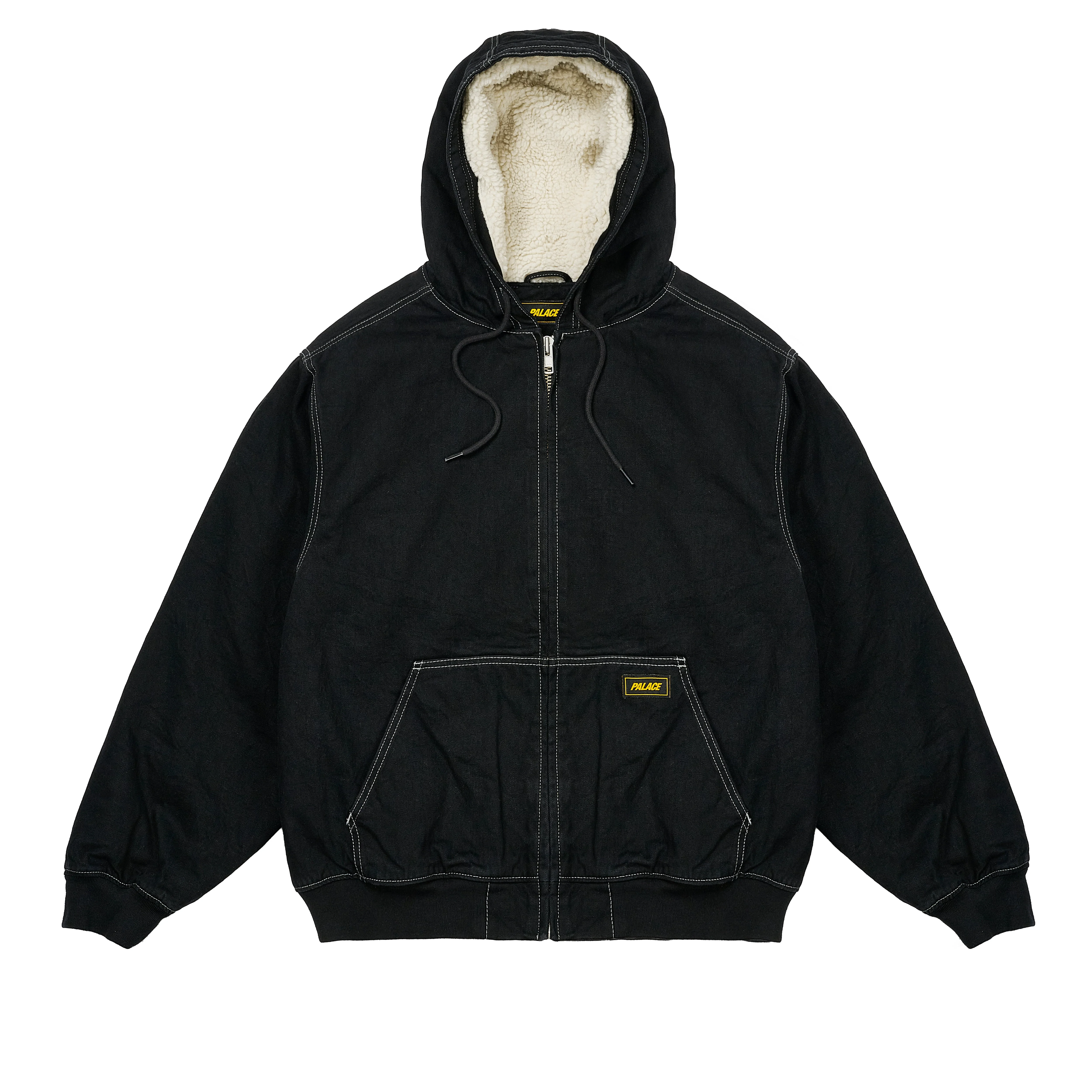 - 100% - rushing this - description - as i have to go - to the shop before it closes - to get dishwasher tablets - because i'm 40 nowadays TECHNICAL DETAILS - heavyweight cotton canvas - faux sherpa lining - laser bleached back branding - adjustable hood with drawcord - front kangaroo pocket - military woven label - ribbed cuff and hem - shell: 100% cotton, fill: 100% polyester, hood lining: 100% polyester, body lining: 100% nylon, rib: 85.5% cotton, 13.5% polyester, 1% elastane