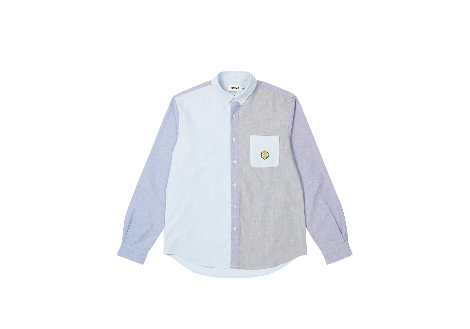 - DON'T GET UP TOO EARLY - YOU WILL RUN OUT OF - TOILET PAPER Technical Details MIXED OXFORD SHIRT BLUE Details - Pocket at left chest with crest embroidery - Palace branded buttons - 100% cotton