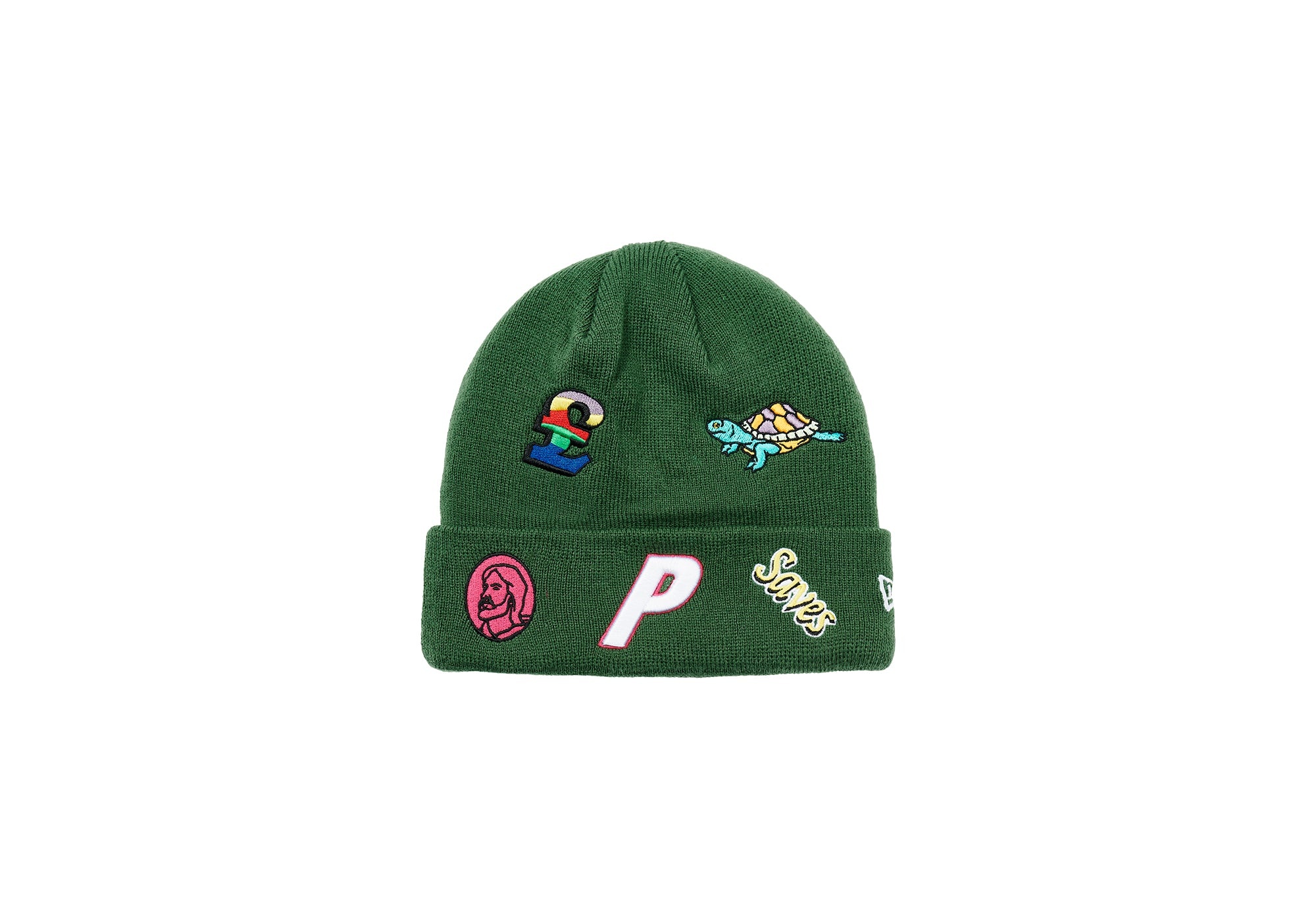 - NUTTY - BEANIE - I RATE ANYONE - THAT'S GOT - THESE KINDS OF PEAS - KNOCKING ABOUT Technical Details PALACE NEW ERA JESUS BEANIE GREEN Details - New Era™ cuff beanie with embroidered Palace logos