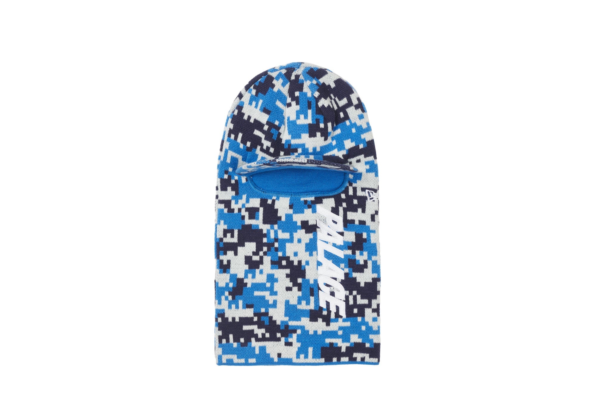 - REACH THE PEAK - OF HEAD WEAR Technical Details NEW ERA PEAKED BALACLAVA BLUE CAMO Details - New Era™ peaked jacquard knit balaclava - Embroidered Palace & New Era™ logos