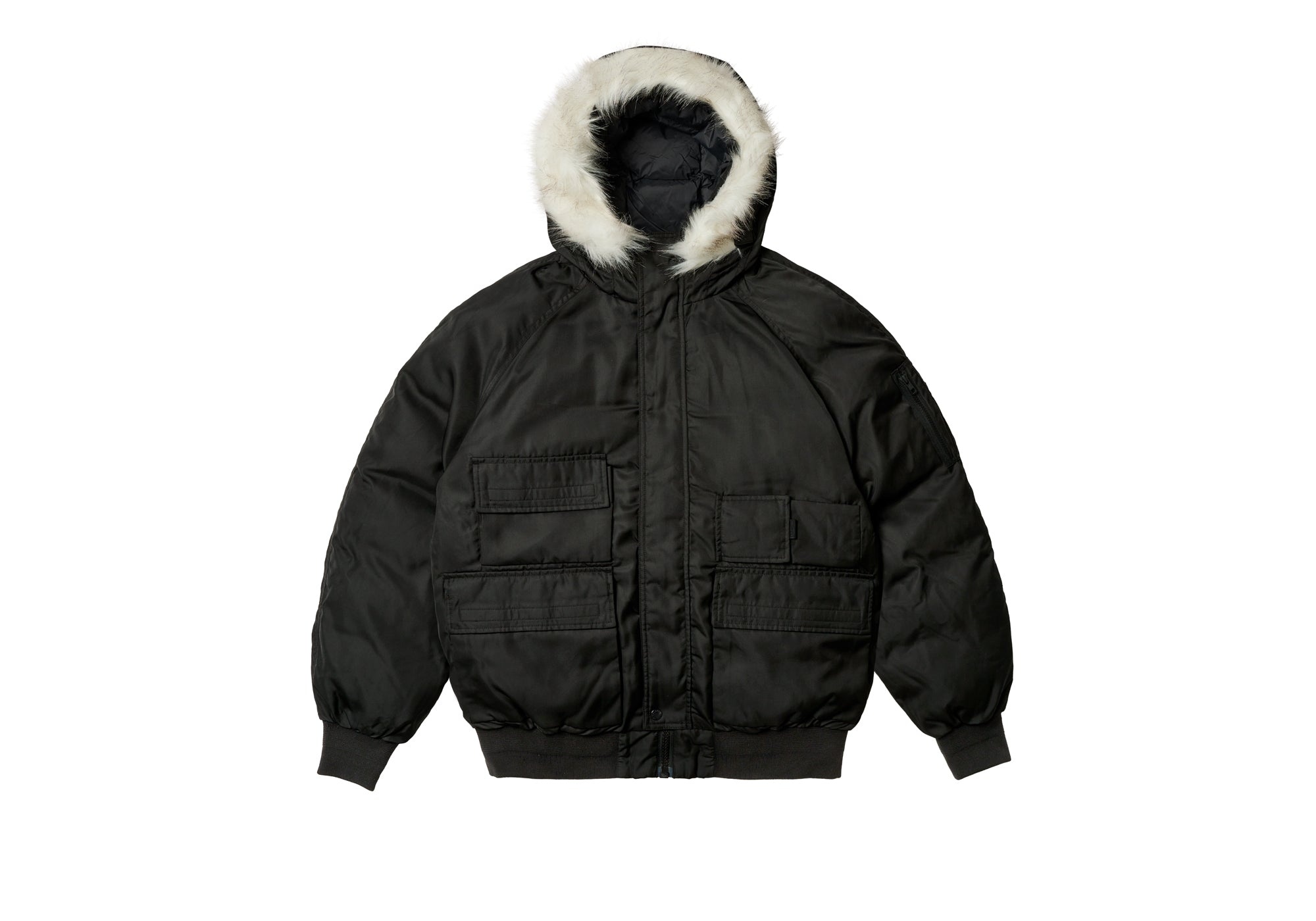 - PALACE - MAKE THE HIGH GRADE - JACKETS - TRUST ME Technical Details P-2B CARGO PARKA BLACK Details - Oxford nylon outer shell fabric - Nylon lining with quilted baffles - 3M featherless fill power 700 insulation - Front cargo pockets - Sleeve zip pocket - Snap front closure storm flap - YKK® VISLON® zippers - Palace Tri-Ferg applique on back panel - Detachable faux fur hood trim - Ribbed cuff and hem