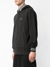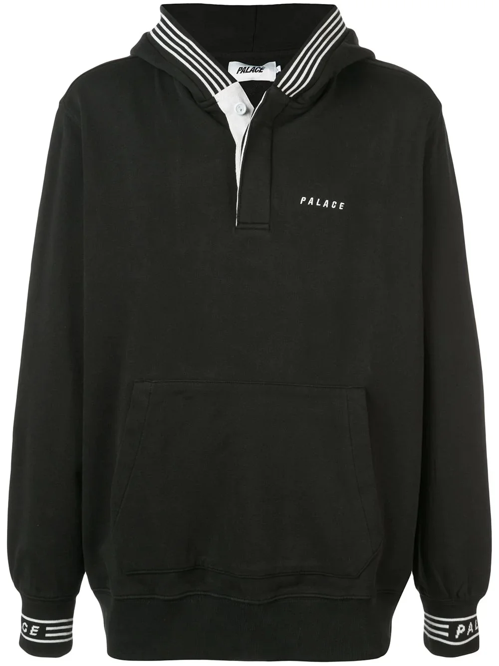 P-Rib stripe-trim hoodie Living the Palace life is not available to everybody. Thankfully, this black cotton P-Rib hoodie from Palace should put you on the right track. Now you're one step closer. Featuring a relaxed fit, a hood, long sleeves, a logo to the chest, a kangaroo pocket, a ribbed hem and cuffs and striped trims. Made in Italy Composition Cotton 100% SIZE & FIT Model measurements Height 6 ft 2 in(1.88 m) Bust/Chest 38.18 in(97 cm) Hips 37 in(94 cm) Waist 29.92 in(76 cm) Washing instructions Machine Wash