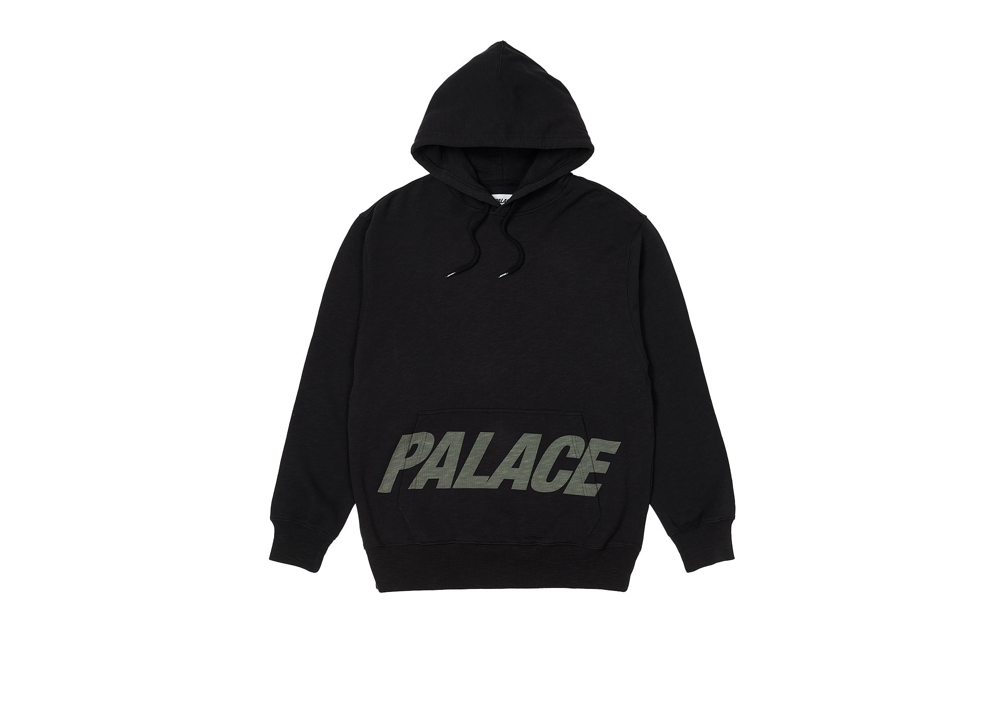 - ALRIGHT BY ME - PAL Technical Details PAL POCKET SLUB HOOD BLACK Details - Slub fabric sweatshirt - Palace text print across kangaroo pocket - Drawcord hood - Palace branded aglets - 100% cotton