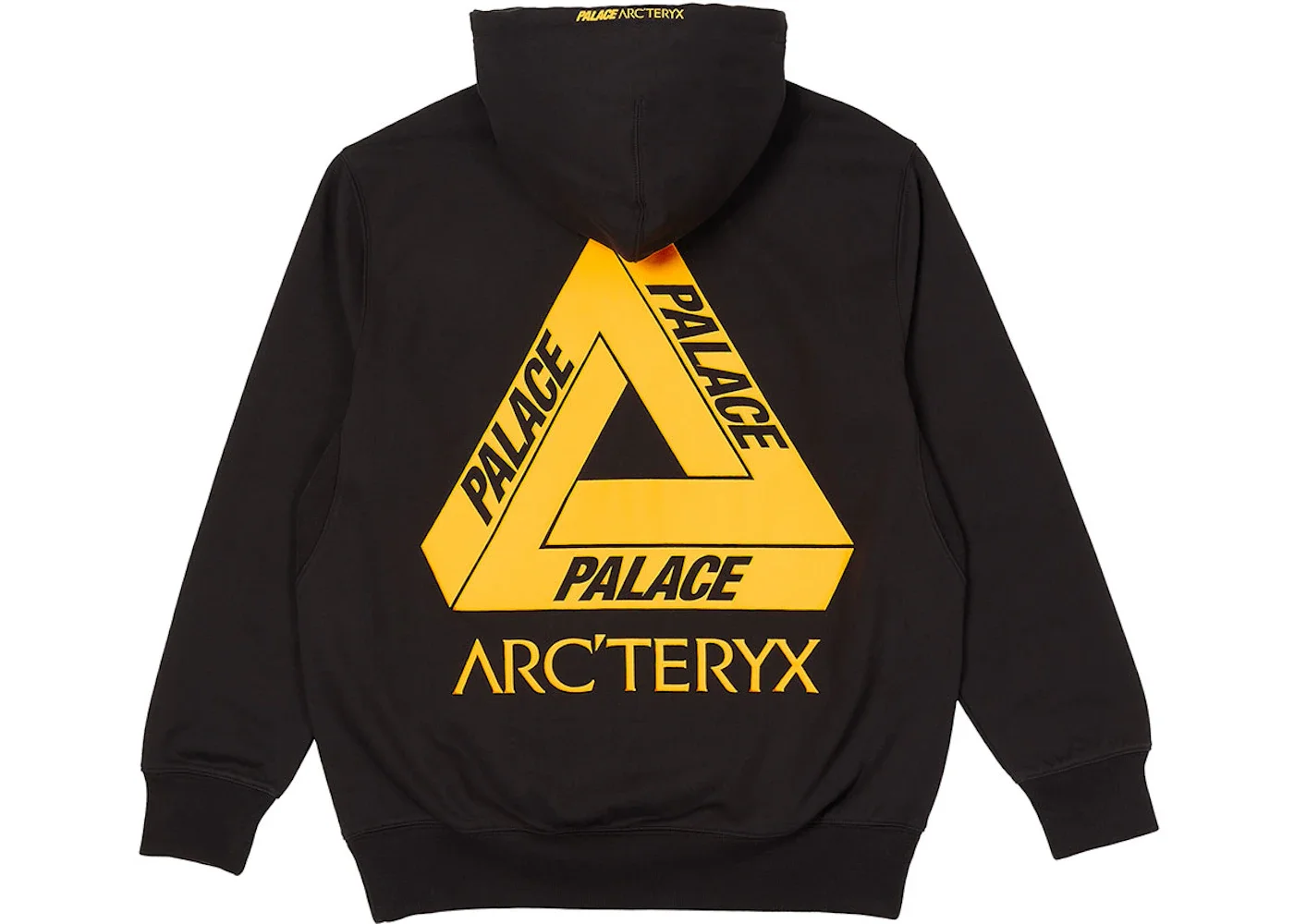 The Palace Arc'Teryx Hood Black is an outerwear garment resulting from a collaboration between Palace and Arc'Teryx. Available in black with yellow branding details, this hoodie is crafted from cotton. Branding details include Arc'Teryx’s Archaeopteryx skeleton logo at the front and the signature Penrose Triangle at the back, with the word "PALACE" on each of its sides and "ARC'TERYX" just below it to highlight the collaboration. "PALACE ARC'TERYX" branding is also featured on the front part of the hood. Ribbed finishes on the hem and cuffs and a kangaroo pouch pocket round out the design. The Palace Arc'Teryx Hood Black was released on December 11th, 2020, retailing at $168. - Season FW20 - Color Black - Release Date 2020-12-11 - Retail Price 168 - Featured false