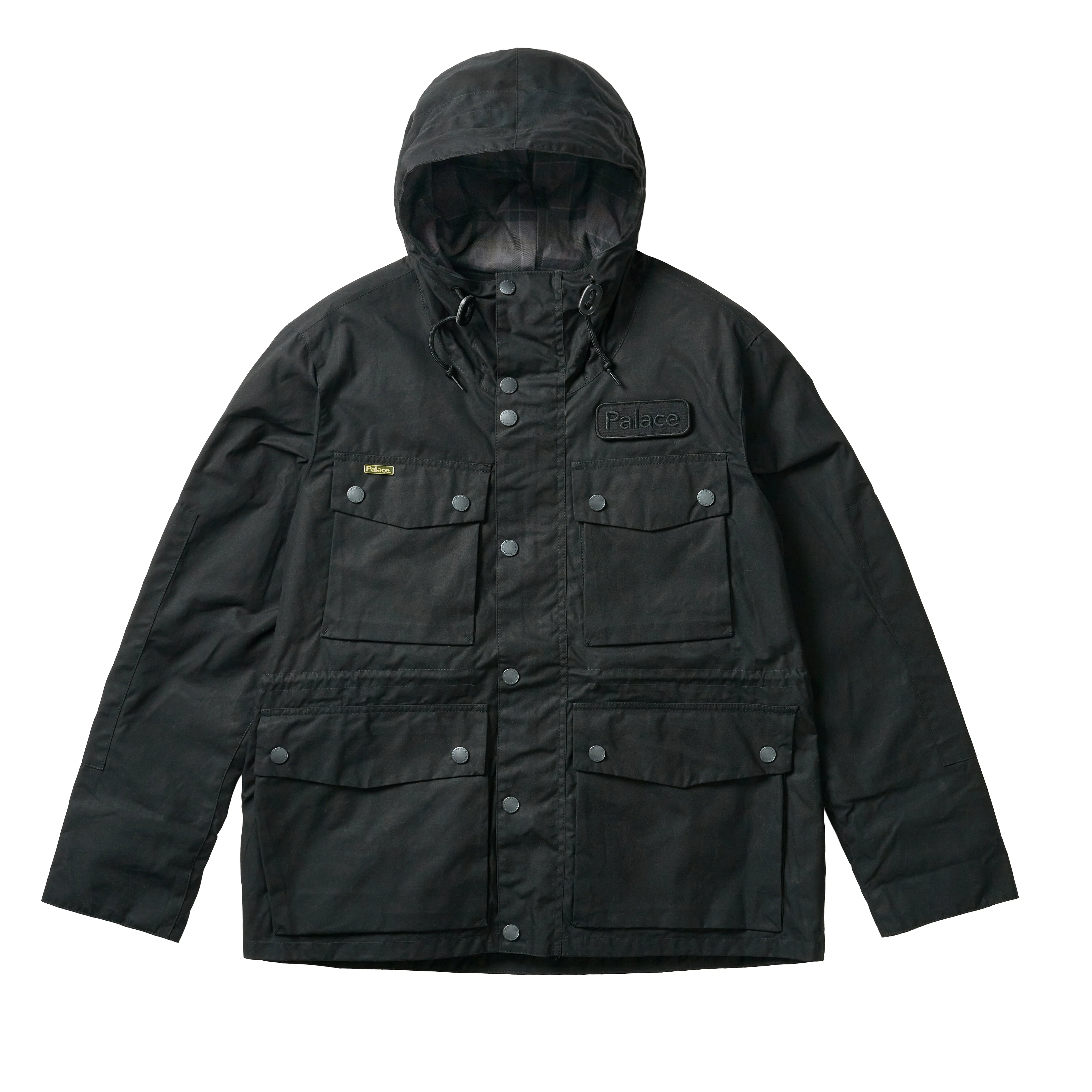 - 100% - i don't need a barber anymore - but i do need this TECHNICAL DETAILS - Adjustable hood - Zip and stud front fastenings - Fasten multi pockets - Lower bellow pocket - Inner wind cuffs - Rear studded pocket - Palace Barbour dual branding set up - Palace embroidered patch - Pin badge to collar - Oversized fit - Outer: 100% Cotton, Inner: 100% Cotton, Dripstrip: 100% Polyester (Recycled)