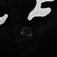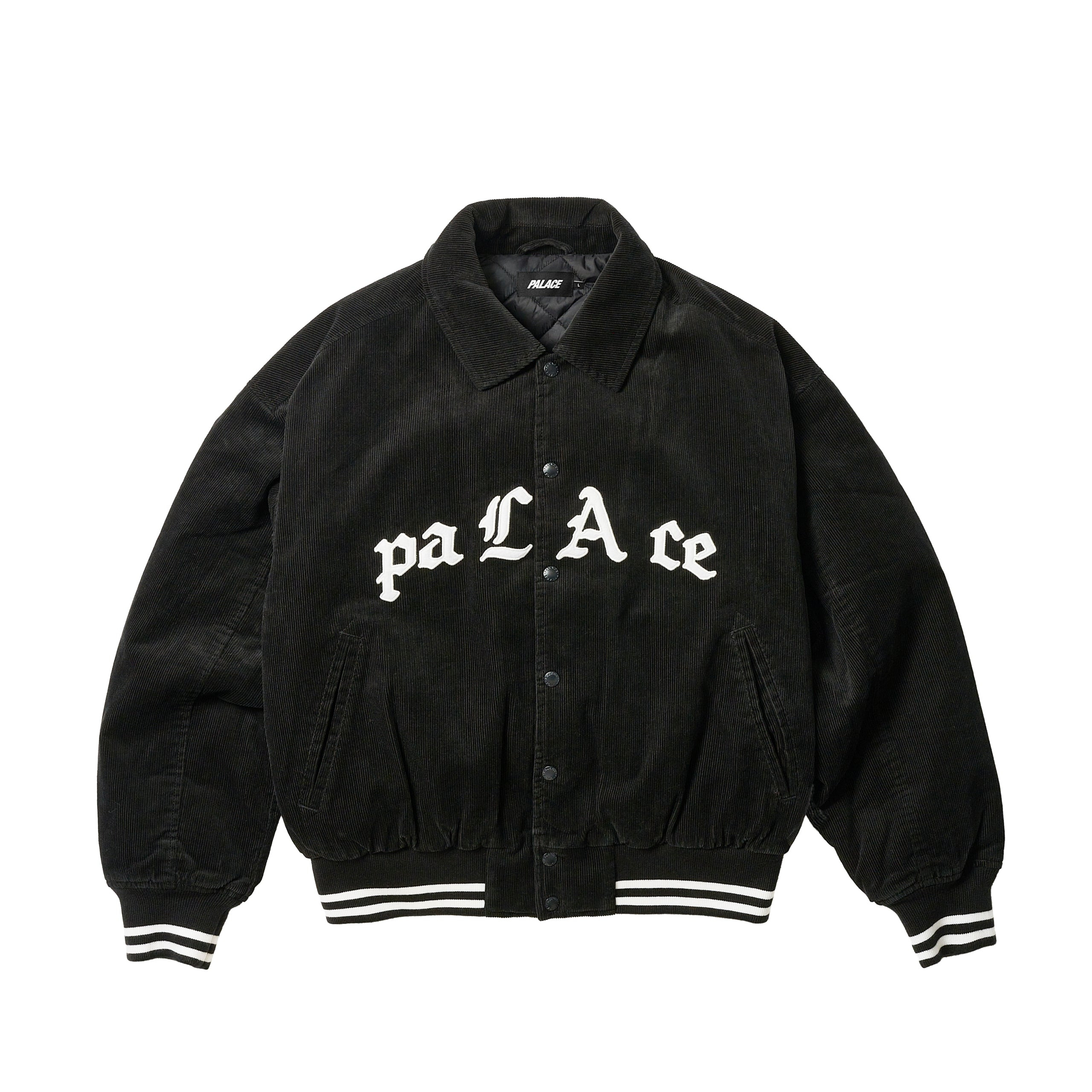 - hang on a sec - just writing a love letter - to my local curry house TECHNICAL DETAILS - needle cord main fabric - engineered stripe collar, cuff and hem knitted rib - side welt pockets - front chest applique embroidery - back panel embroidery - palace branded snaps - shell: 100% cotton, filling: 100% polyester, lining: 100% nylon