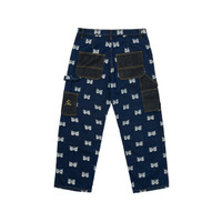 - dunno about - fruit in puddings man - key lame pie TECHNICAL DETAILS - 100% cotton embroidered denim - double knee construction denim pants with contrast worker patch details - hammer loop pocket - metal shank buttons