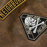 PALACE NEIGHBORHOOD BIKER LEATHER JACKET BROWN