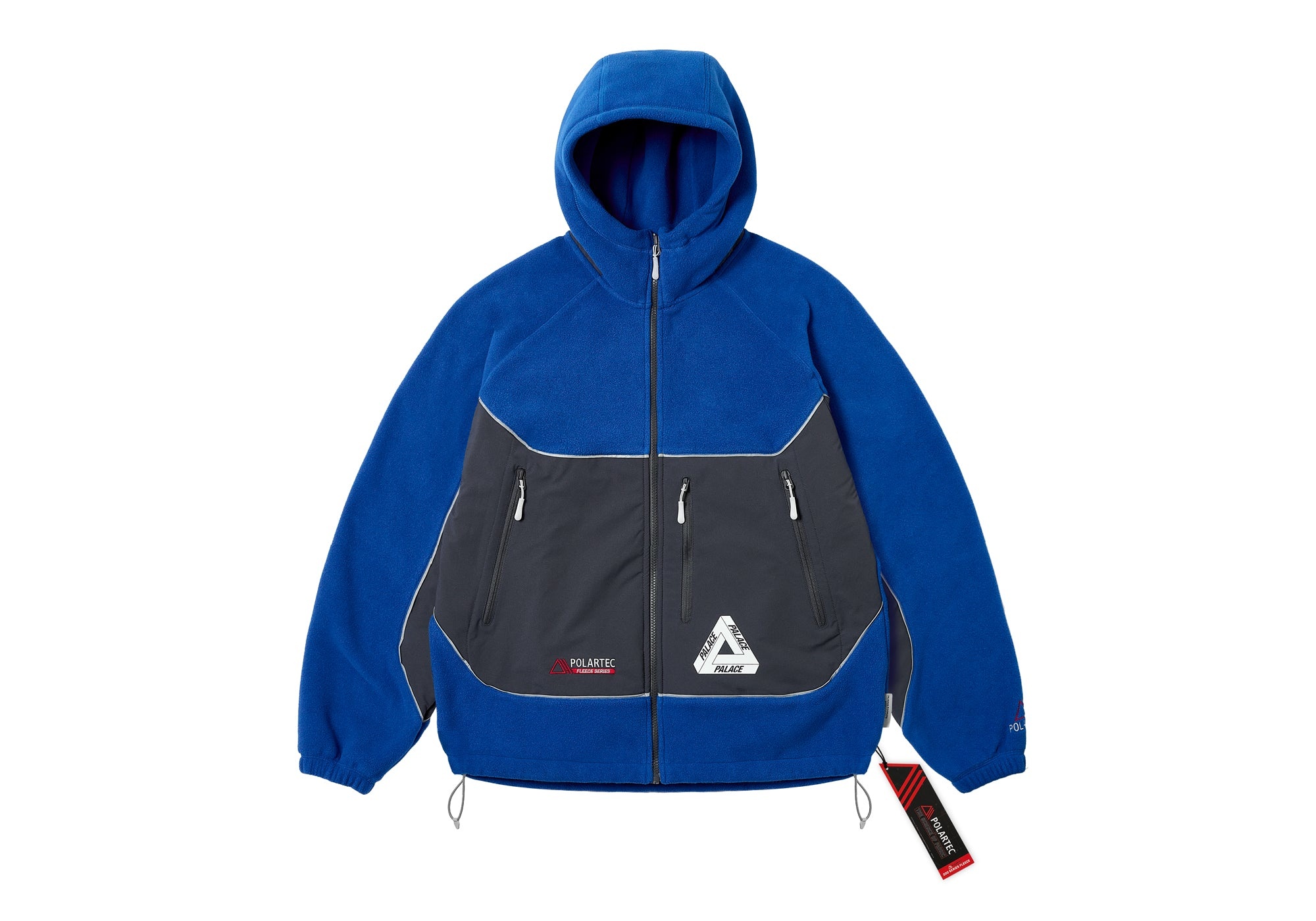 - 100% - GLAD I'M NOT - A LEATHER JACKET PERSON Technical Details POLARTEC 3M HOODED JACKET ULTRA Details - Polartec® 200 series polar fleece fabric - Lycra spandex overlay panels - 3M™ Scotchlite™ reflective piping - YKK® vislon front zipper - Full zip front opening - 1 zipped chest pocket - 2 lower zipped hand warmer pockets - Adjustable shock cord hem - Adjustable shock cord hood - Palace Tri-Ferg branding - Embroidered Polartec® branding - Palace branded rubber zip pulls