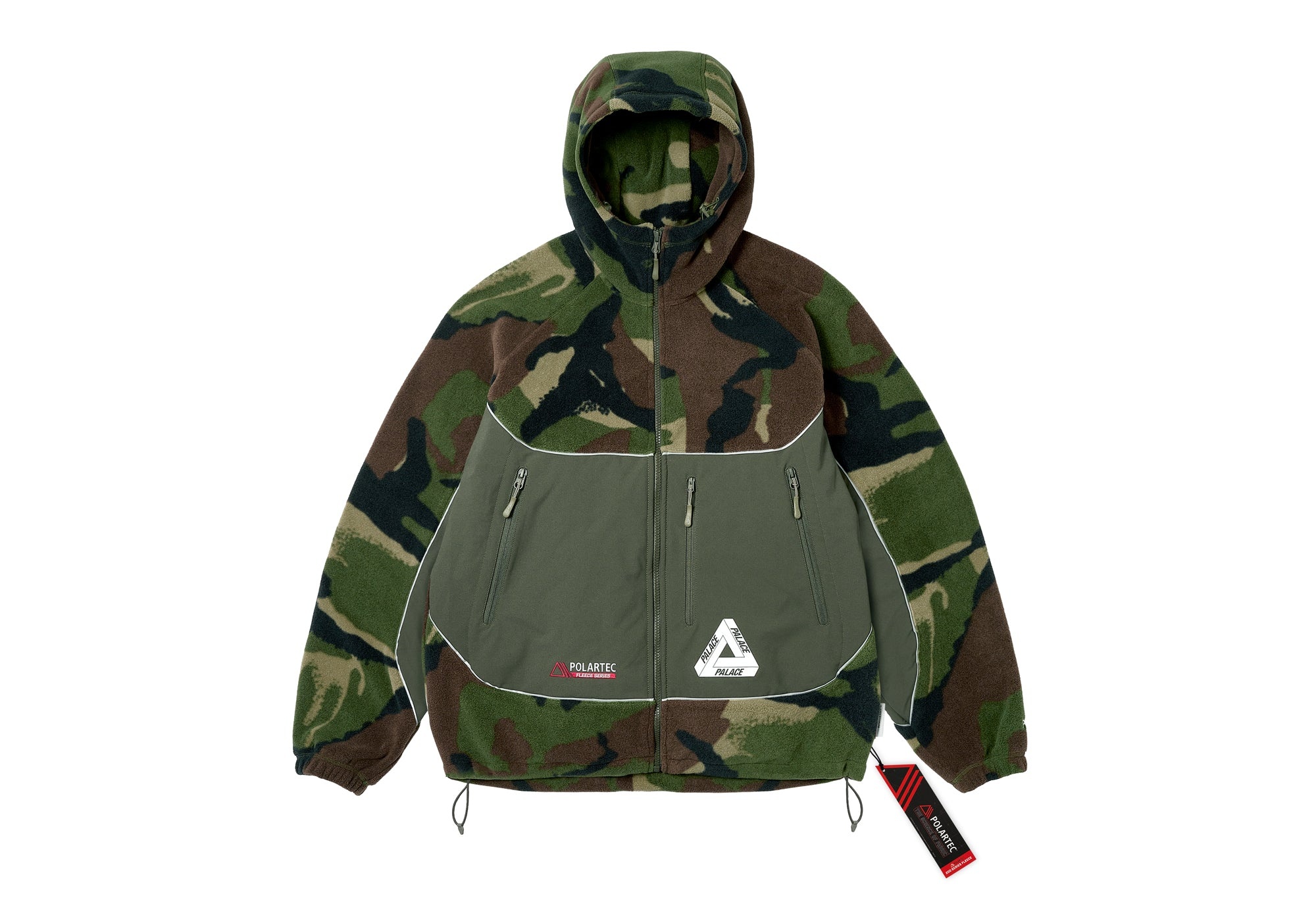 - TECHNICAL DETAILS - Polartec® 200 series polar fleece fabric - Lycra spandex overlay panels - 3M™ Scotchlite™ reflective piping - YKK® vislon front zipper - Full zip front opening - 1 zipped chest pocket - 2 lower zipped hand warmer pockets - Adjustable shock cord hem - Adjustable shock cord hood - Palace Tri-Ferg branding - Embroidered Polartec® branding - Palace branded rubber zip pulls