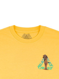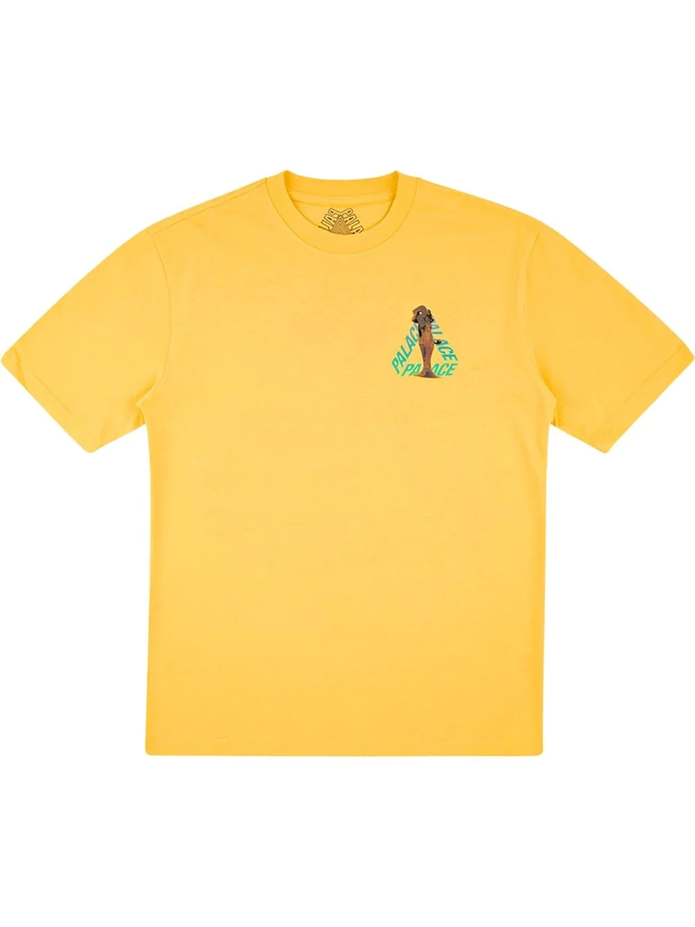 Rolls P3 logo-print T-shirt The Palace Rolls P3 T-shirt Yellow remixes the brand’s Tri-Ferg logo for yet another fresh take as part of their Autumn 2019 season. The left chest features a printed graphic of a bronze statue of a woman holding Palace’s “P” logo. Gradient Palace branding surrounds the design. The image repeats on the back of the short sleeve shirt to finish off the look. Imported Composition Cotton 100% Washing instructions Machine Wash