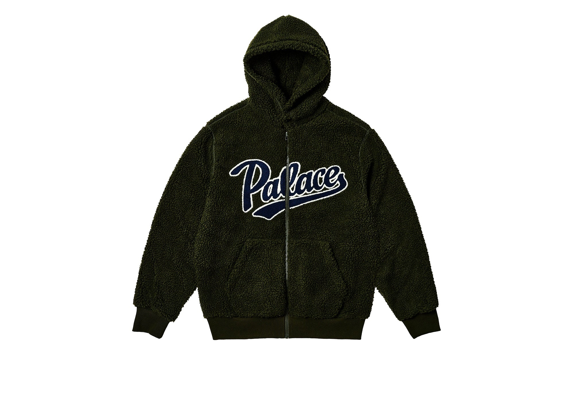 - HOODIE - MIT DAS - GOODIE Technical Details SCRIPT HOOD HUNTSMAN Details - Bonded sherpa fleece fabric - Chenille front branding - Mesh lined - Palace branded poppers on hood