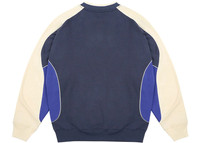 The Palace Star Script Crew Navy is a multicolored sweatshirt with a v-neck. The Palace logo appears on the front in bright blue, with a red star highlighting the logo. The sweatshirt body is navy, accented by cream sleeves, bright blue inserts on the body and sleeves, and cream piping. The v-neck collar is finished in navy and cream ribbed trim. London-based Palace Skateboards has shown a prominent rise in the world of skateboards and streetwear since its founding in 2009. While the brand is primarily associated with its triangular "Tri-Ferg Logo," it plays with many iterations of its logo, as seen in the Crew sweatshirt’s star script branding. Our experts feel that the best feature of the Script Crew Navy is the color story, which has a contemporary aesthetic while also recalling vintage graphics. The Palace Star Script Crew Navy was released on February 9, 2024, and retailed at $265. - Season SS24 - Color Navy - Release Date 2024-02-09 - Featured false - Requester Kelsey K - Uploaded By LL