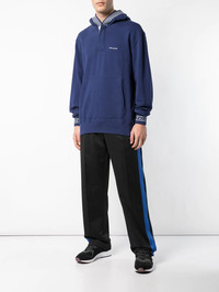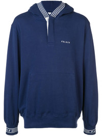 P-Rib trim hoodie The Palace P-Rib Hood is a striped trim hoodie with plenty of style. While it may not boast patterns and vibrant color, this hooded sweatshirt takes on a more classic approach with detailing that makes the look. Made of 100% cotton, the navy blue top-piece comes with a straight fit, Palace logo on the chest, and kangaroo pocket. Striped trims in white line the hood and cuffs, and each trim bears four stripes with the Palace wordmark in the middle. Imported Composition Cotton 100% SIZE & FIT Model measurements Height 6 ft 2 in(1.88 m) Bust/Chest 38.18 in(97 cm) Hips 37 in(94 cm) Waist 29.92 in(76 cm) Washing instructions Machine Wash