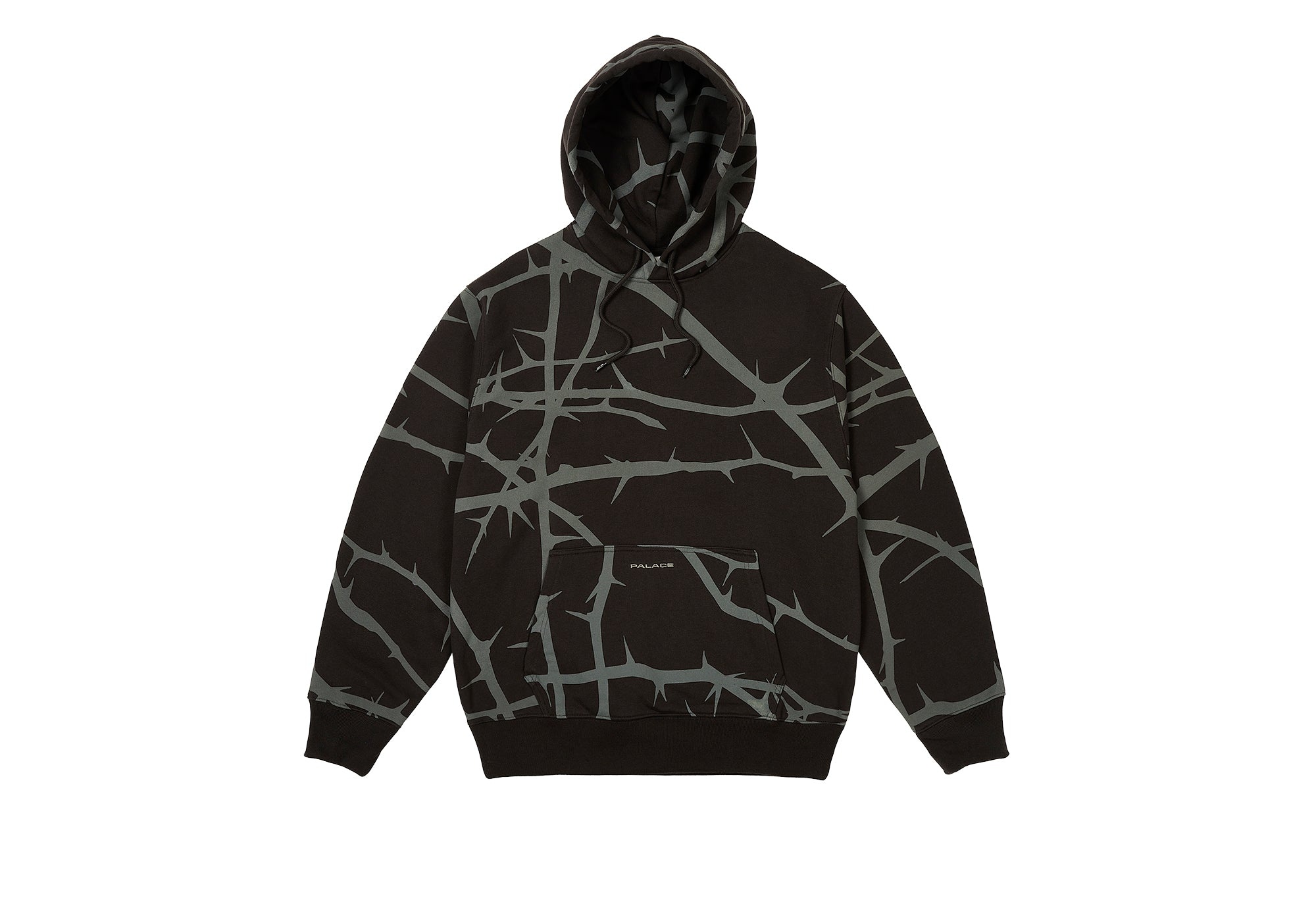 - 100% - THORNY TECHNICAL DETAILS - 400gsm brush fleece - All over thorn discharge printed hood - Palace branded aglets - Kangaroo pocket with Palace embroidery