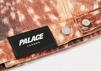 - DEAR PALACE - THIS DEER PRINT JACKET - IS BANGIN TECHNICAL DETAILS - Deer printed denim jacket - Rinse wash - Front chest pockets and seam pockets - Palace branded metal hardware - Leather deboss back patch