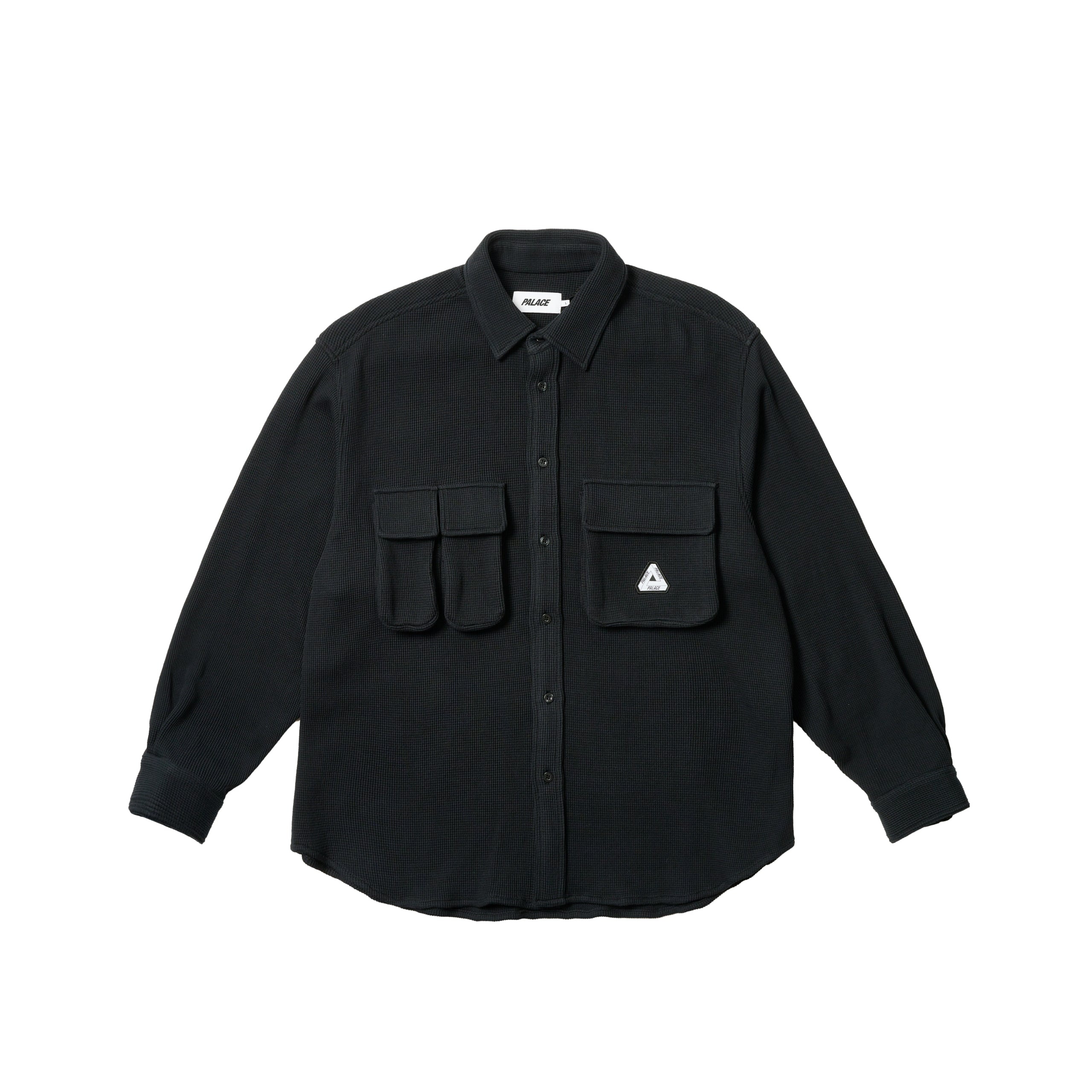 - I JUST GOT WAFFLES - DELIVERED TO MY DRUM - ARE YOU GETTING ME TECHNICAL DETAILS - WAFFLE FABRIC OVERSIZED SHIRT - FRONT POCKETS IN SELF - TRI-FERG LABEL ON LEFT POCKET - PALACE BRANDED BUTTONS - 100% COTTON