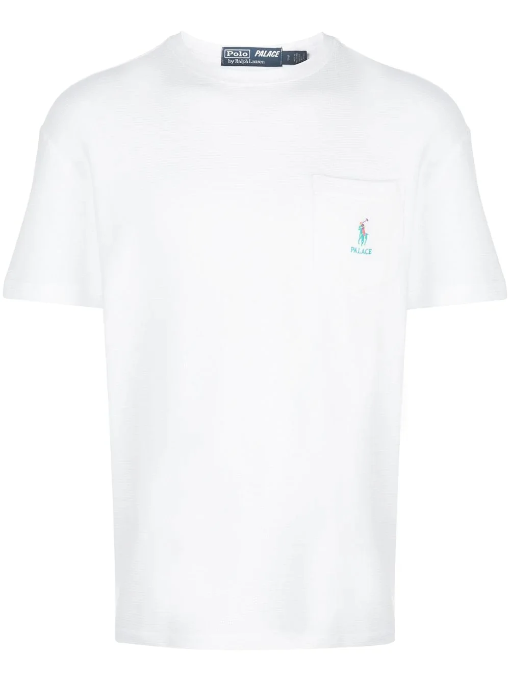 x Polo Ralph Lauren logo embroidered T-shirt White cotton x Polo Ralph Lauren logo embroidered T-shirt from Palace featuring a round neck, short sleeves, a relaxed fit, an embroidered design and a chest pocket. Imported Composition Cotton 100% SIZE & FIT Model measurements Height 6 ft 2 in(1.88 m) Bust/Chest 38.18 in(97 cm) Hips 37 in(94 cm) Waist 29.92 in(76 cm) Washing instructions Machine Wash