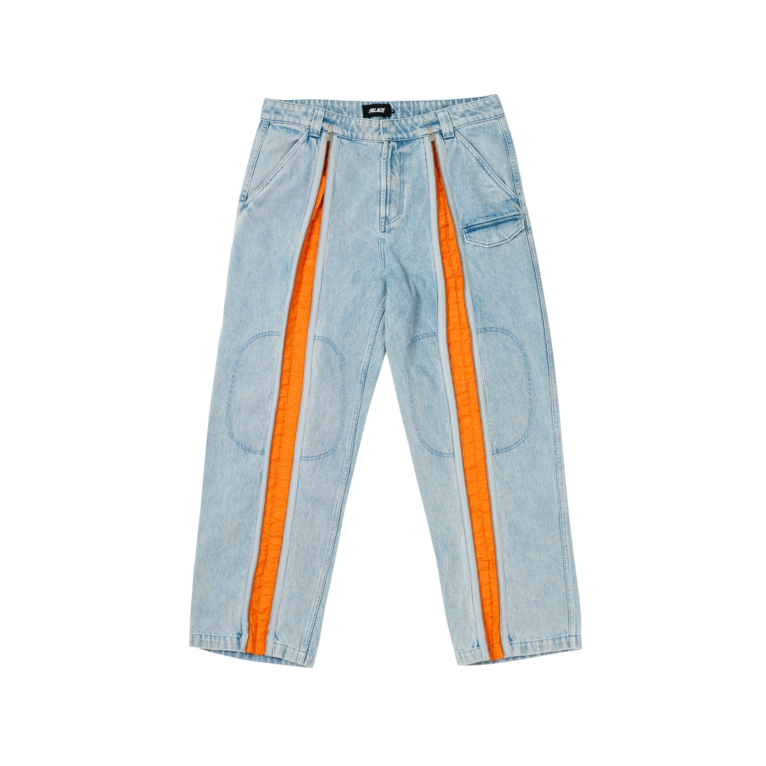 - DON’T GET STONED - AND WASH TECHNICAL DETAILS - 12 OZ DENIM SHELL - NYLON CONTRAST LINING - FUNCTIONAL LEG ZIPS - SIDE ENTRY POCKETS - BACK POCKET WITH BUTTON CLOSURE - PALACE LONDON WOVEN LABEL ON THE BACK - PALACE BRANDED METAL HARDWARE