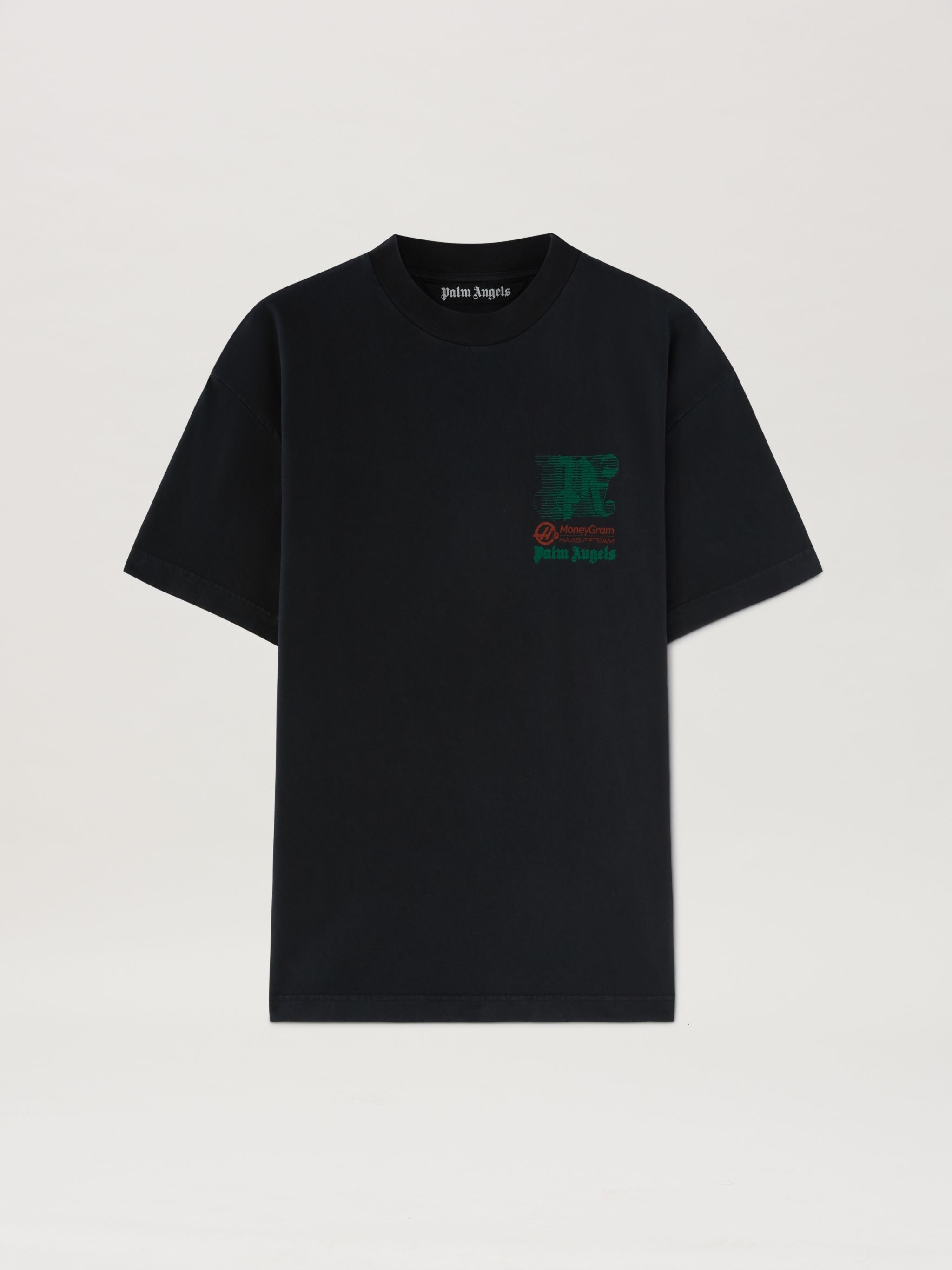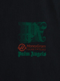 Get your own custom "livery", featuring special prints, colors and details to match the cities home of the 2024 Formula 1 World Championship. Men's black short-sleeved T-shirt with, on front, blurred Monogram and Palm Angels logo printed in green and, between the two, the MoneyGram Haas F1 Team logo printed in red. On the back, maxi lettering celebrating the Abu Dhabi Grand Prix with city, state, year, logo and Palm Angels Monogram printed in green, MoneyGram Haas F1 Team logo in black on green field and red pixel driver's helmet on the background. 100% COTTON PRODUCT ID: PMAA001T24JER0101055