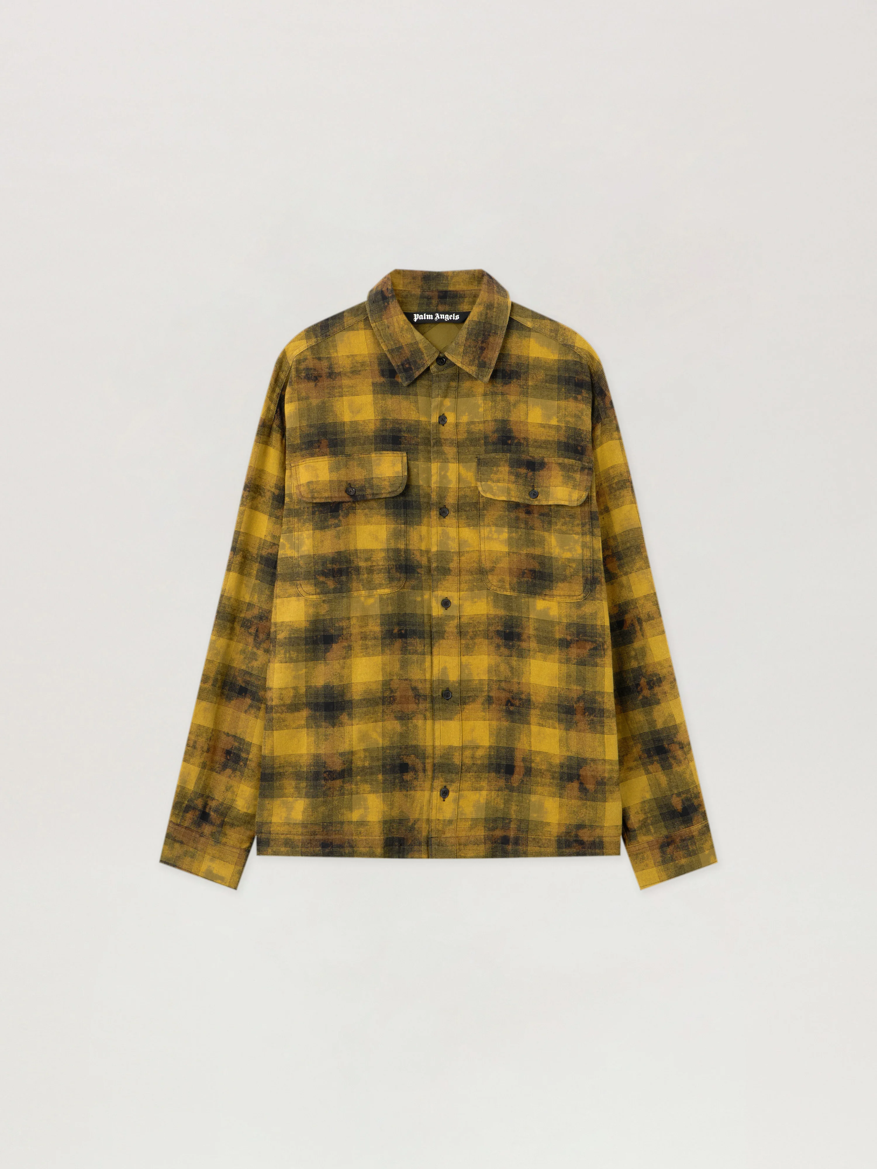 Long-sleeve checkered shirt featuring a distinct curved logo, crafted for a dynamic silhouette synonymous with streetwear elegance. - Button-down collar for a classic touch - Front button fastening ensuring a sleek profile - Long sleeves tailored for a refined fit - Double chest pockets adding functional detail - Straight hem providing a polished finish DETAILS - 60% Cotton 40% Polyester - Code: PMGE043F25FAB0025810