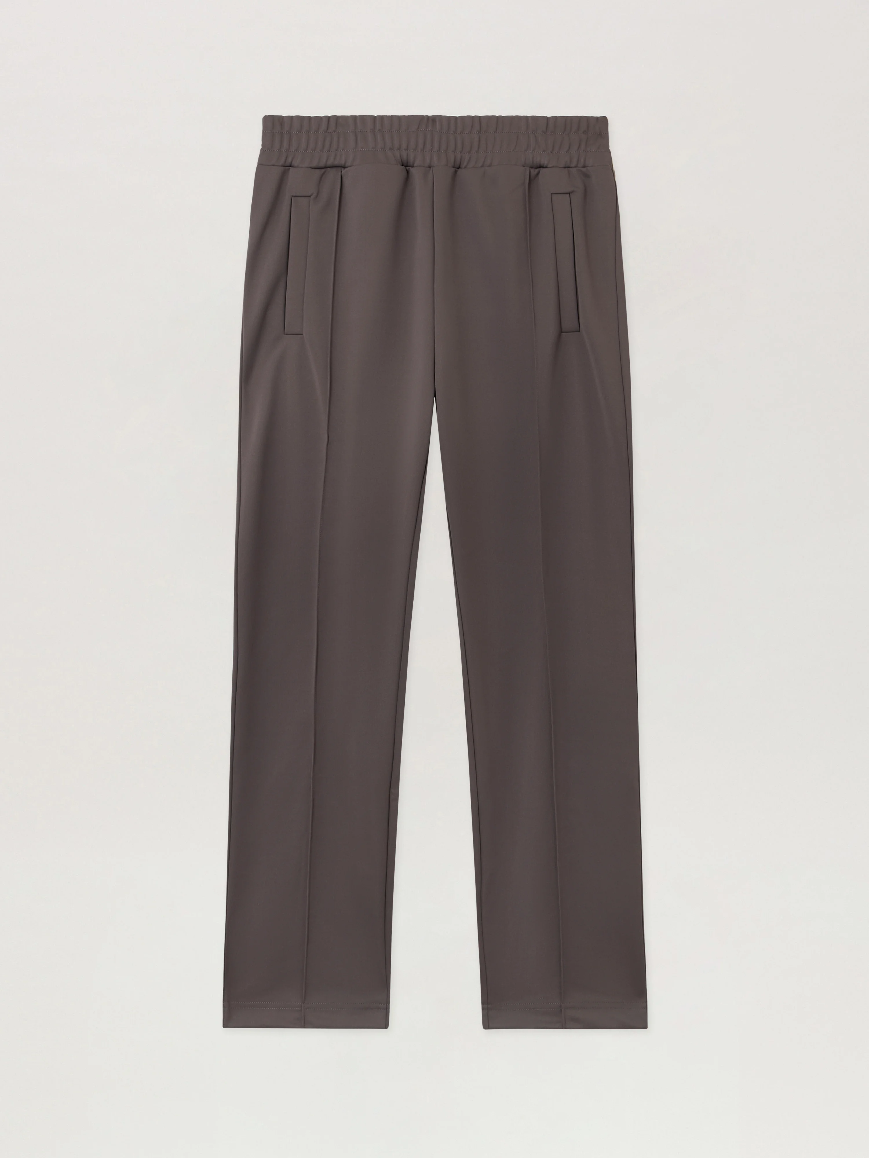 Track pants crafted from smooth fabric featuring a distinctive curved logo at the back. - Elastic waistband for a comfortable fit - Streamlined silhouette with a refined edge - Discrete side pockets for practicality - Back curved logo detail for signature style - Tapered legs offering a modern look DETAILS - 100% Polyester, Lining: 100% Polyester - Code: PMCJ048F25FAB0010703