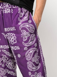 bandana-print logo trousers Made in Italy Composition Polyester 100% SIZE & FIT Model measurements Height 6 ft 1 in(1.86 m) Bust/Chest 35.43 in(90 cm) Hips 35.43 in(90 cm) Waist 29.92 in(76 cm) FittingInformation This piece fits true to size. We recommend you get your regular size Regular fit Made with a lightweight non-stretch fabric Washing instructions Dry Clean Only