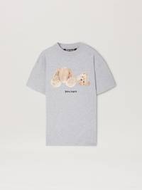 SHORT SLEEVES T-SHIRT IN MELANGE GREY COTTON WITH BEAR GRAPHIC PRINTED AT FRONT. "PALM ANGELS" LOGO PRINTED IN BLACK AT FRONT AND CURVED AT BACK. CREWNECK COLLAR. FABRIC 100% COTTON - RIB DETAIL 100% COTTON MODEL PAOLO WEARS SIZE M HEIGHT: 6'2 (187 CM) CHEST: 32" (82 CM) WAIST: 27" (68 CM) HIPS: 36" (91 CM) PRODUCT ID: PMAA001C99JER0010860