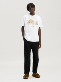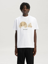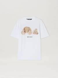 SHORT SLEEVES T-SHIRT IN WHITE COTTON WITH BEAR GRAPHIC PRINTED AT FRONT. "PALM ANGELS" LOGO PRINTED IN BLACK AT FRONT AND CURVED AT BACK. CREWNECK COLLAR. FABRIC 100% COTTON - RIB DETAIL 100% COTTON PRODUCT ID: PMAA001C99JER0010160