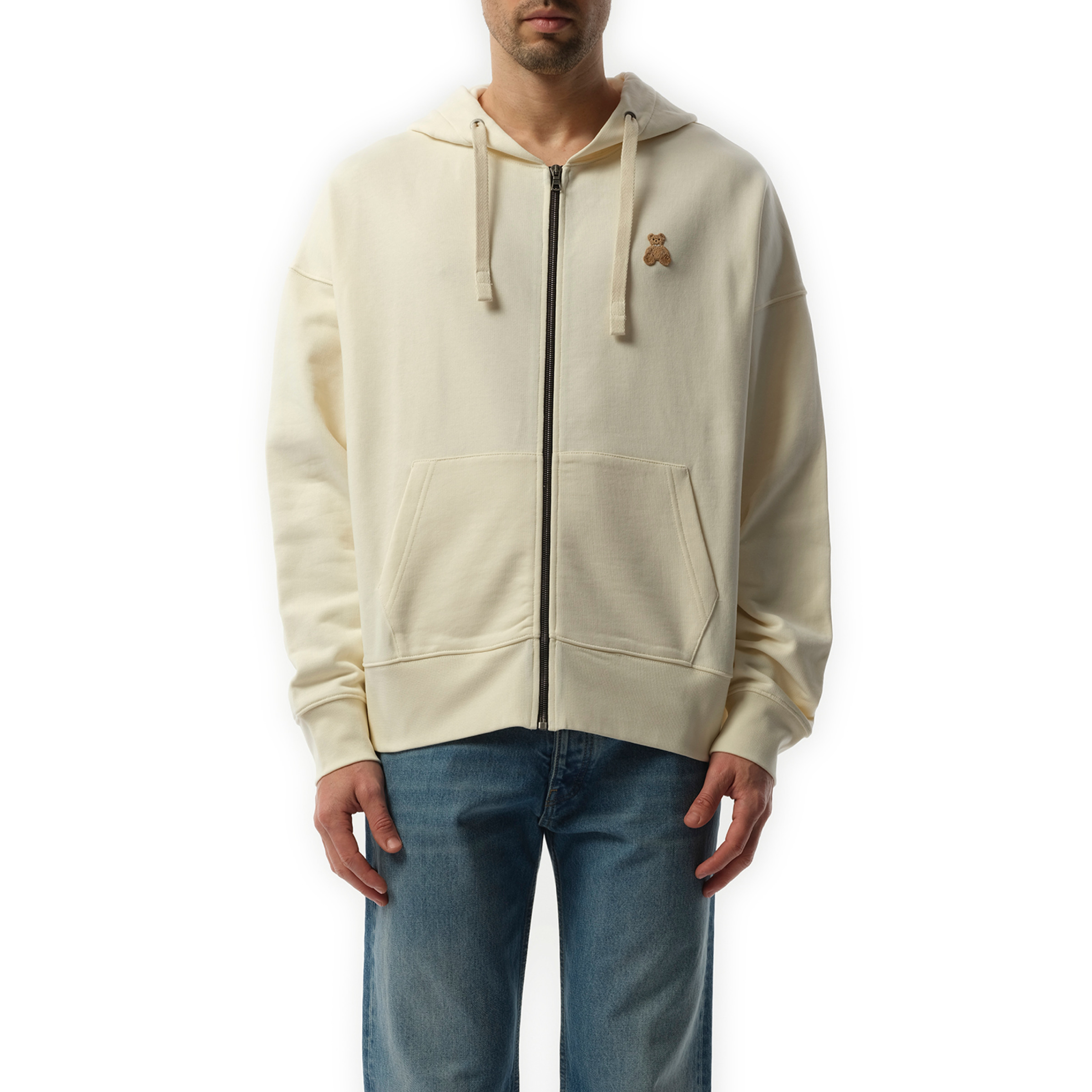 Stay cozy and stylish with our Bear in Mind Zip Hoodie in Off White/Brown. Made with a soft blend of materials, this hoodie features a zip-up front, convenient pockets, and a unique bear graphic. Perfect for any outdoor adventure or casual day out. - Composition: 100% Cotton - Bear motif - Drawstring hood - Front zip fastening - Two side pouch pockets - Long sleeves - Made in Turkey Model is 192 cm and wears size M SKU: PMBE021F24FLE0010360