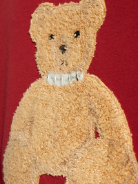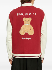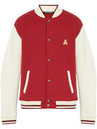 bear-motif bomber jacket Highlights - Ruby red - Front press-stud fastening - Two side slit pockets - Long sleeves - Straight hem Imported Composition Cotton 58%, Polyester 30%, Acrylic 11%, Wool 1%