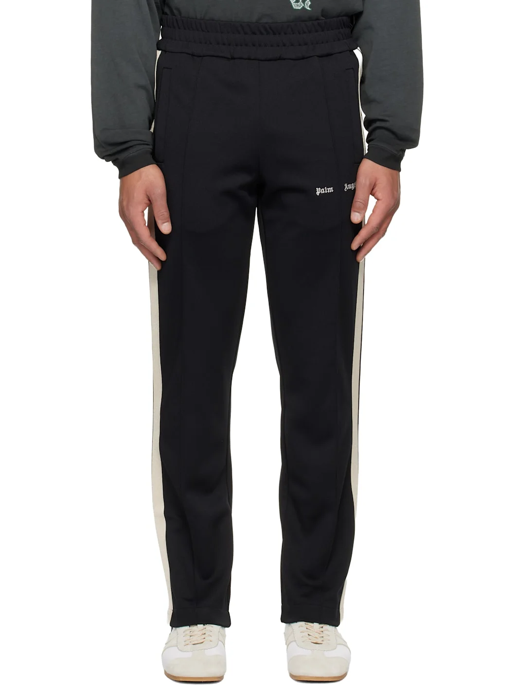 Interlock jersey track pants. · Straight-leg · Elasticized waistband · Two-pocket styling · Logo embroidered at front · Pinched seam at front legs · Zip vent at cuffs · Striped knit trim at outseams Supplier color: Black/Off white 100% polyester. Made in Portugal 252695M190000