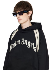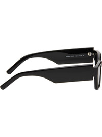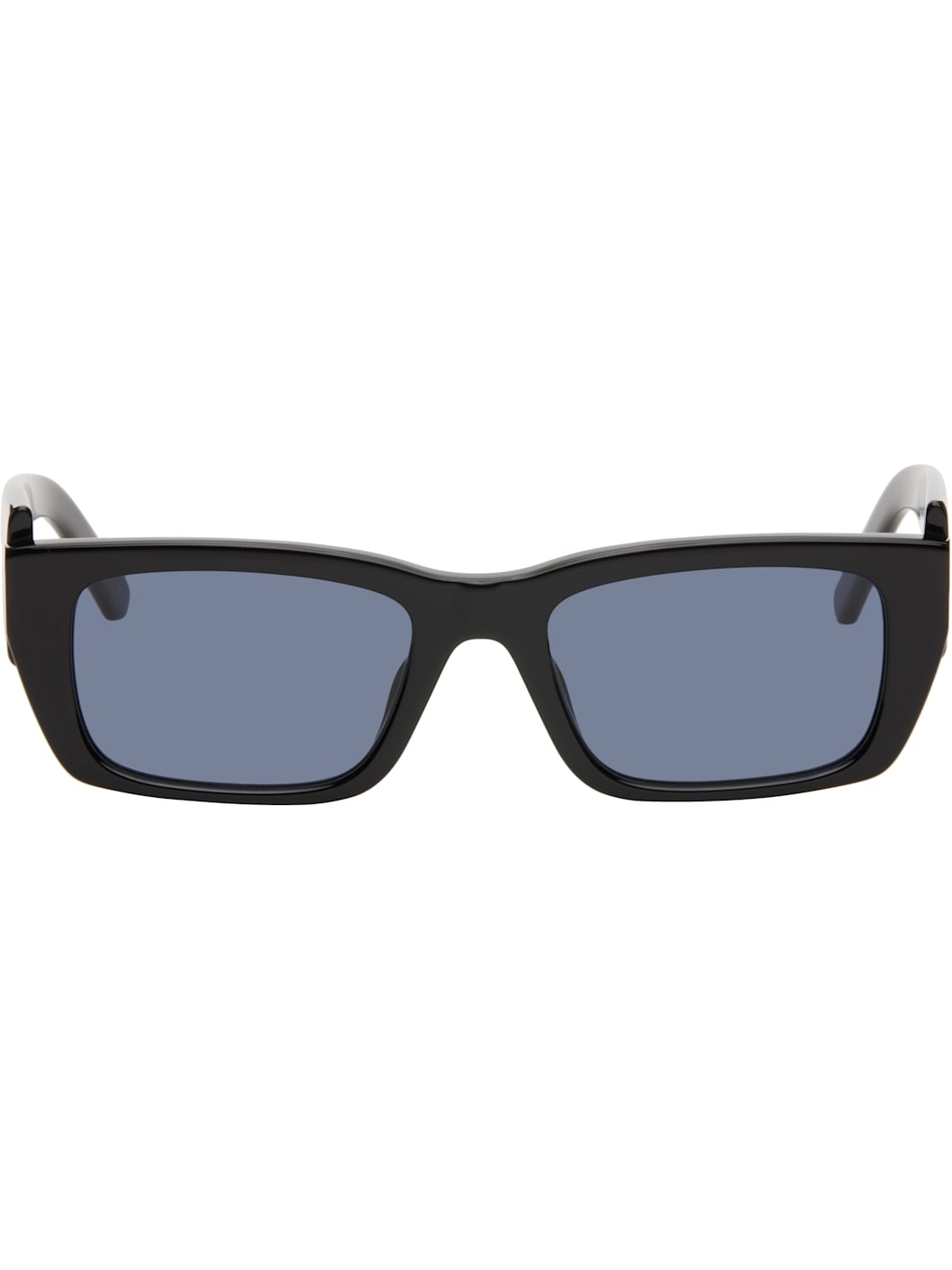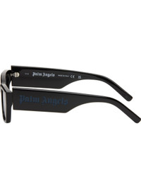 Rectangular acetate-frame sunglasses in black. · Blue lenses · Integrated nose pads · Inset logo hardware at temple · Includes case · Size: 53.19 145 Supplier color: Black/Light blue Acetate. Made in Italy 251695M134009