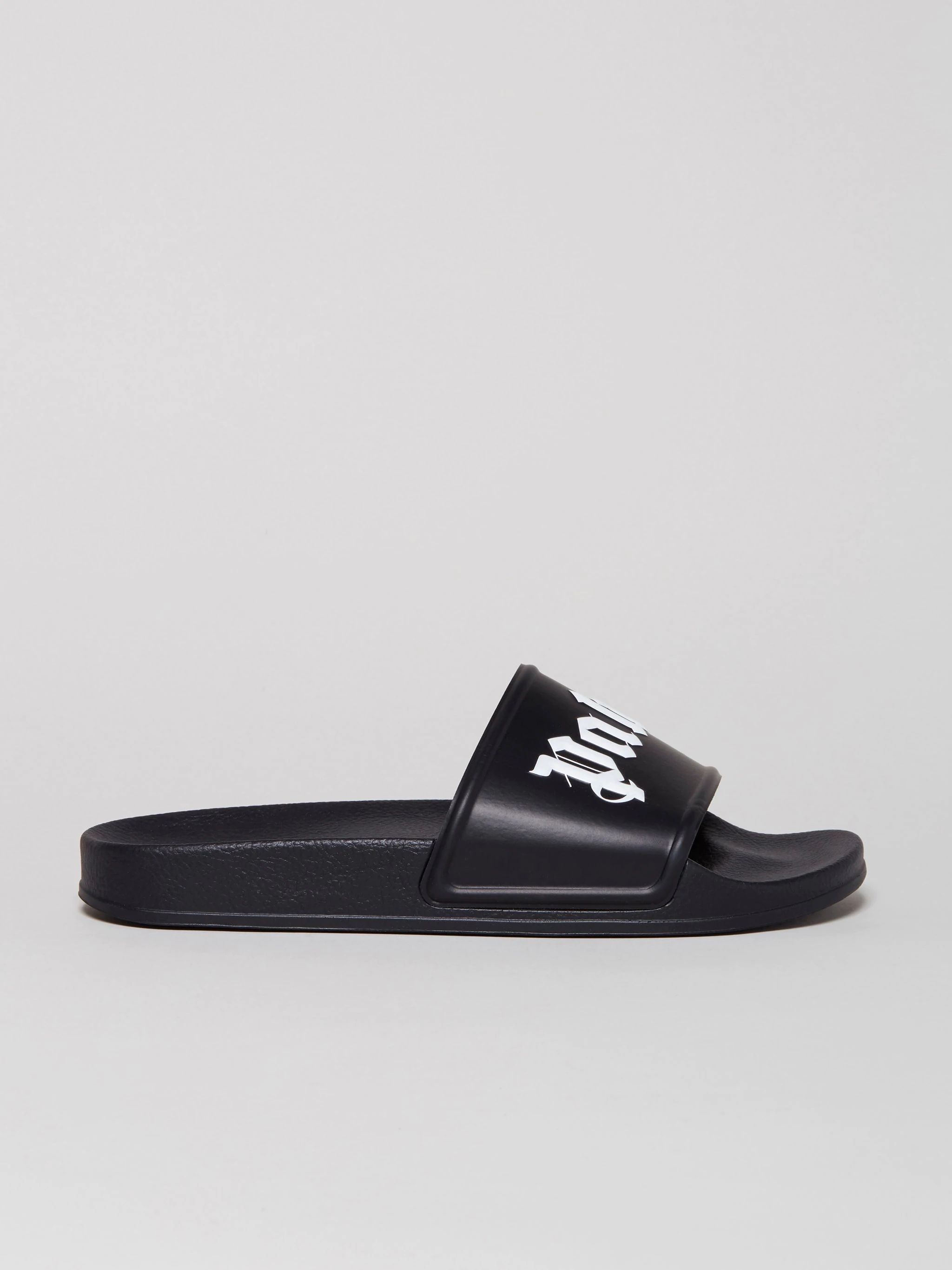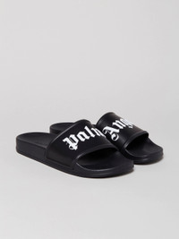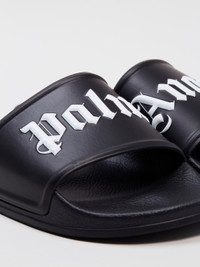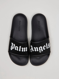Sliders in black with "Palm Angels" logo printed at front. PRODUCT ID: PMIC001F21MAT0011001